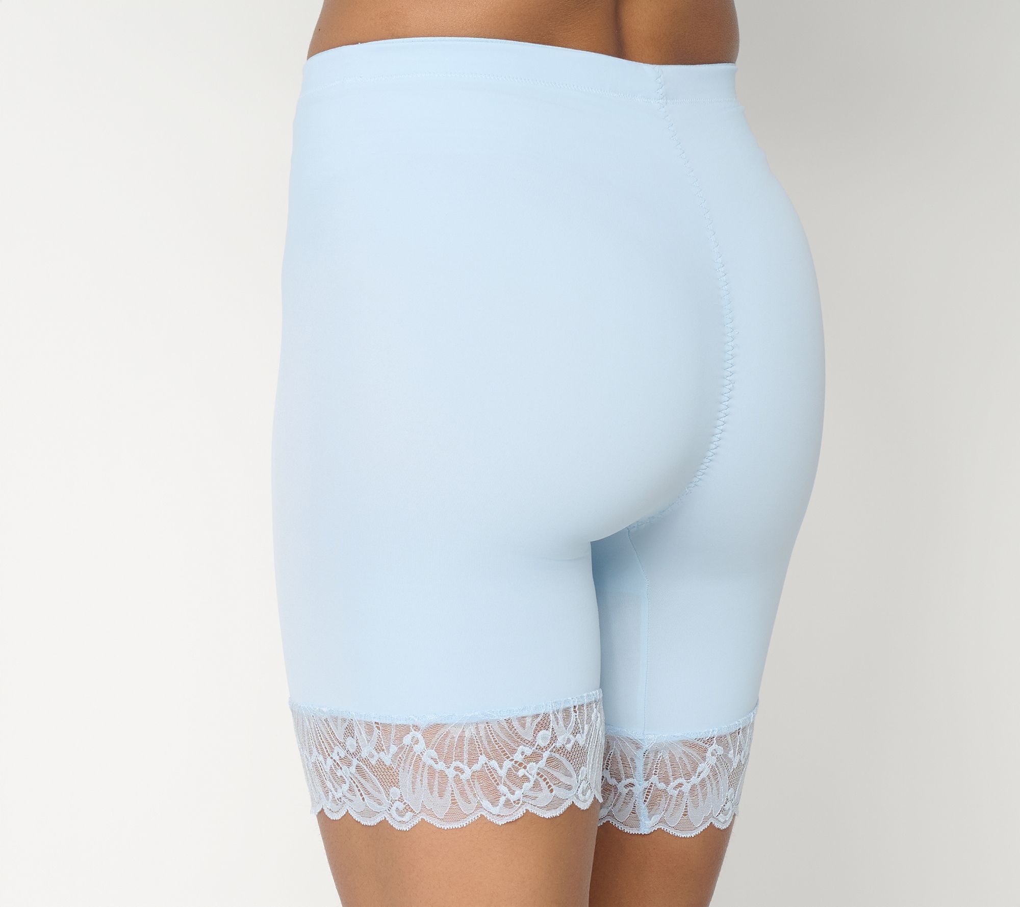 Whether heading to brunch or relaxing at home, these slip shorts offer reliable comfort and style under skirts, dresses, or pants. Lightweight knit with feminine lace trim and a ruched center back moves with you while helping smooth and prevent chafing throughout your day. From Breezies®.