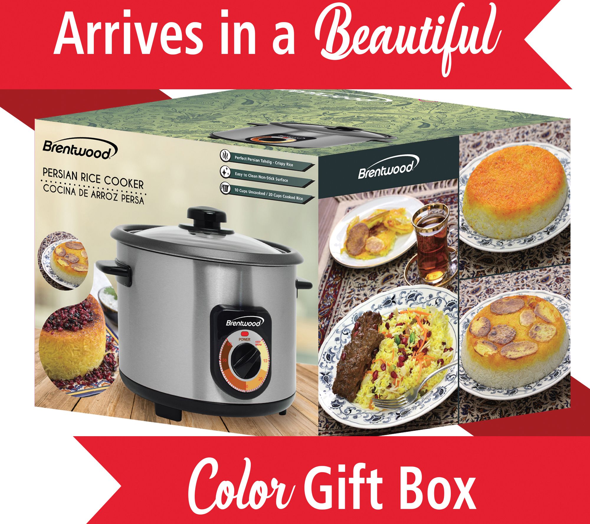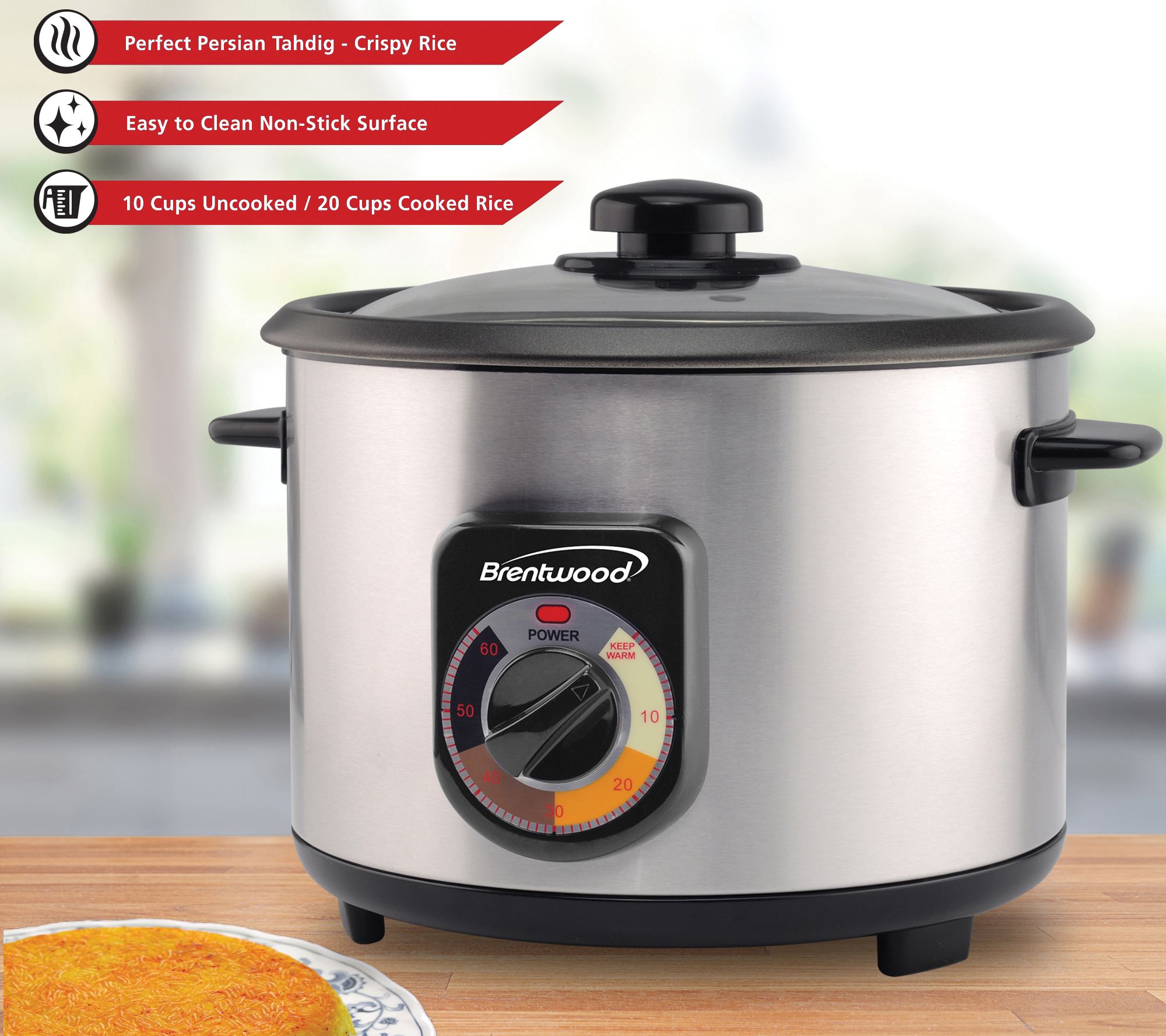 Brentwood 10-Cup Crunchy Persian Rice Cooker wi th Lid