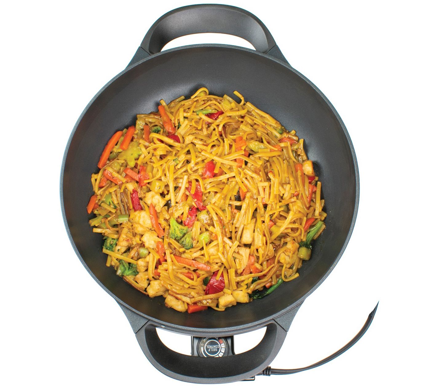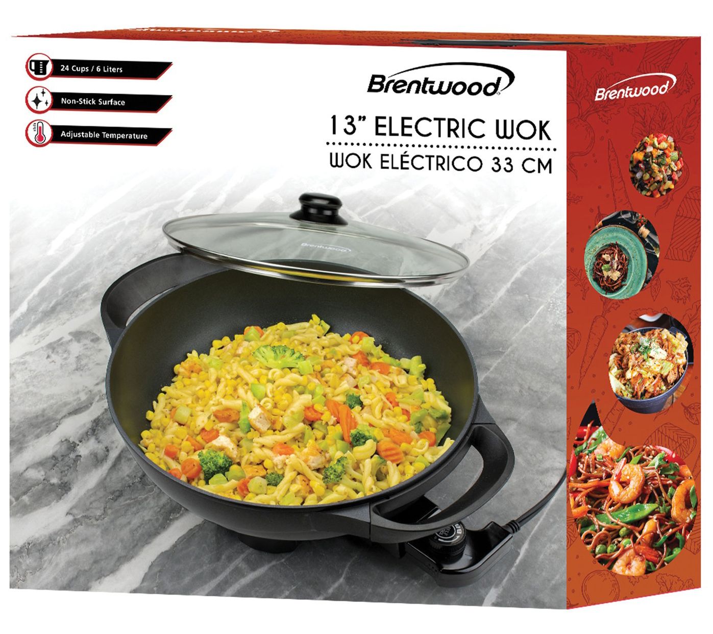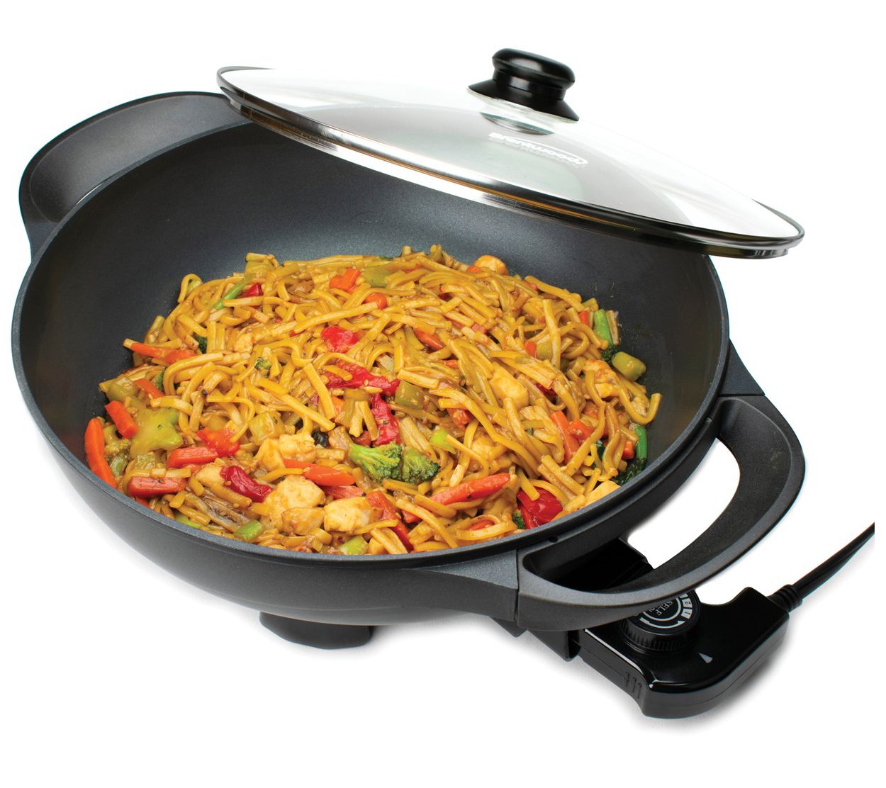 Fresh sauted veggies, zesty stir fries, and savory fried rice are quick and easy to prepare in this 13" non-stick electric wok. From Brentwood.