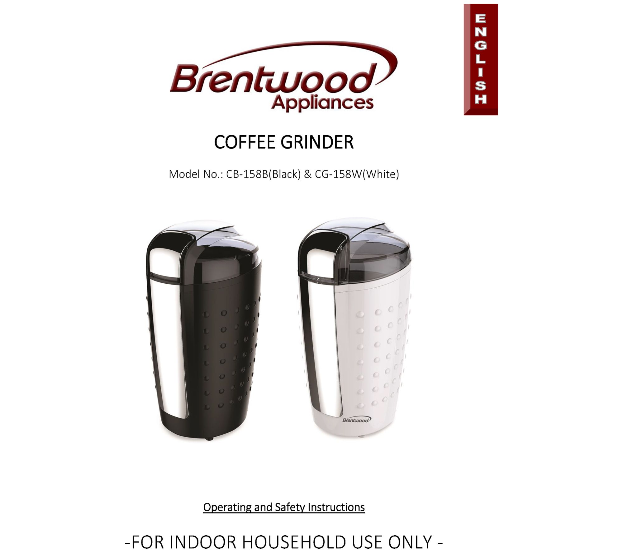 The 150 watt Brentwood Appliances' 4 Oz. Coffee and Spice Grinder uses1-touch operation to grind quickly and evenly using durable stainlesssteel blades. Grind coffee beans, spices, herbs and nuts! See the coarseness of the contents with the clear view top. The built-in safety lock system prevents accidents. DIM: 4.5'' x 4'' x 8'';Coffee Grinder;Coffee Grinder;Coffee Grinder