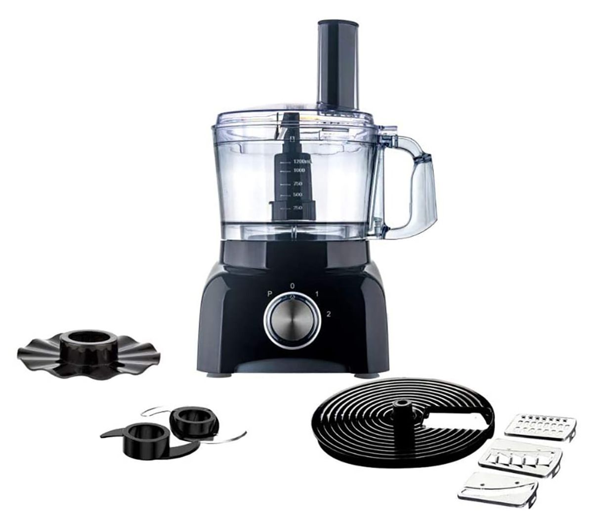 • Includes food processor, 5-cup work bowl, and interchangeable blades to chop, slice mix, julienne and emulsify