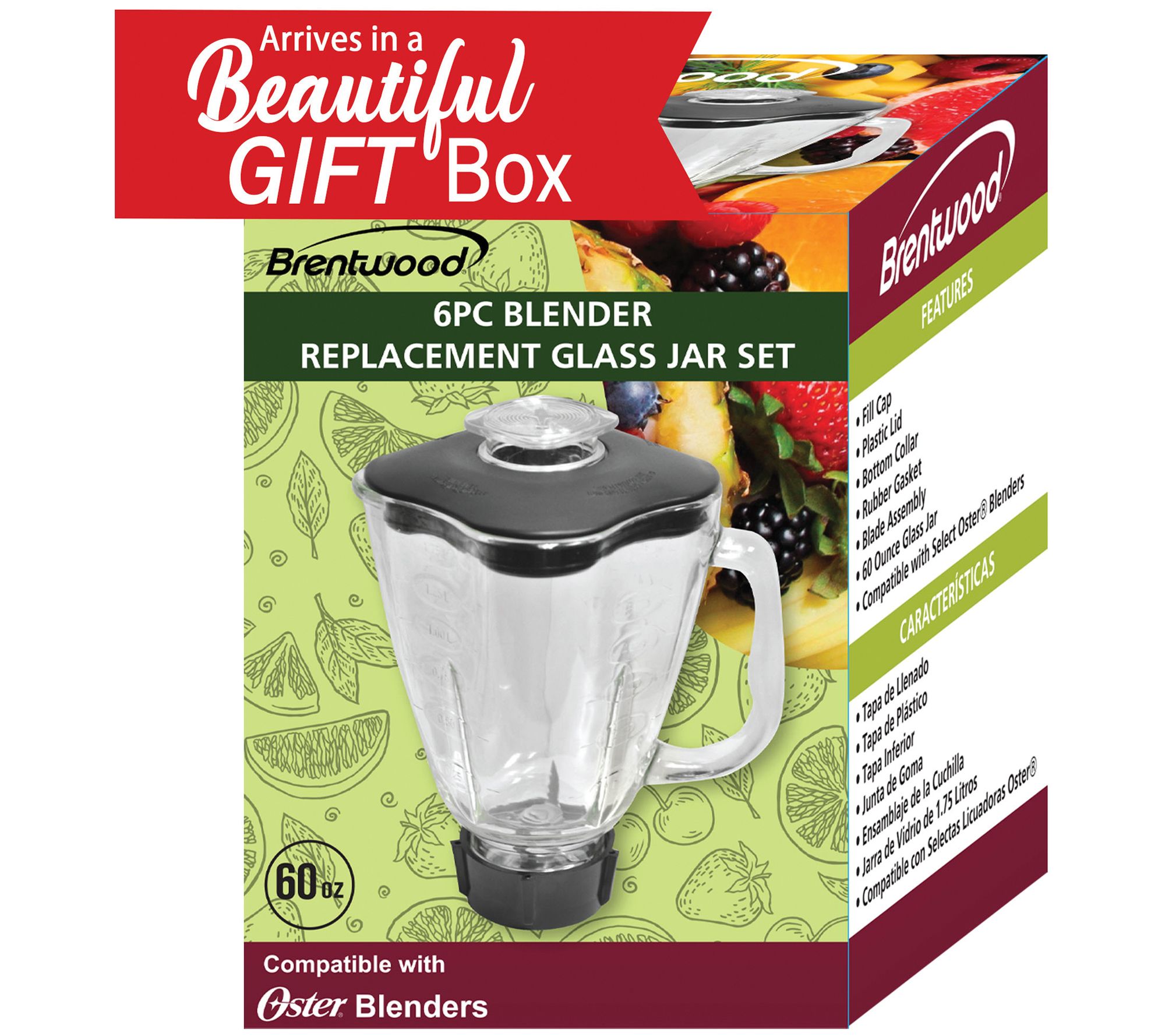 Brentwood 60oz Blender Glass Jar Set for Oster P-OST723