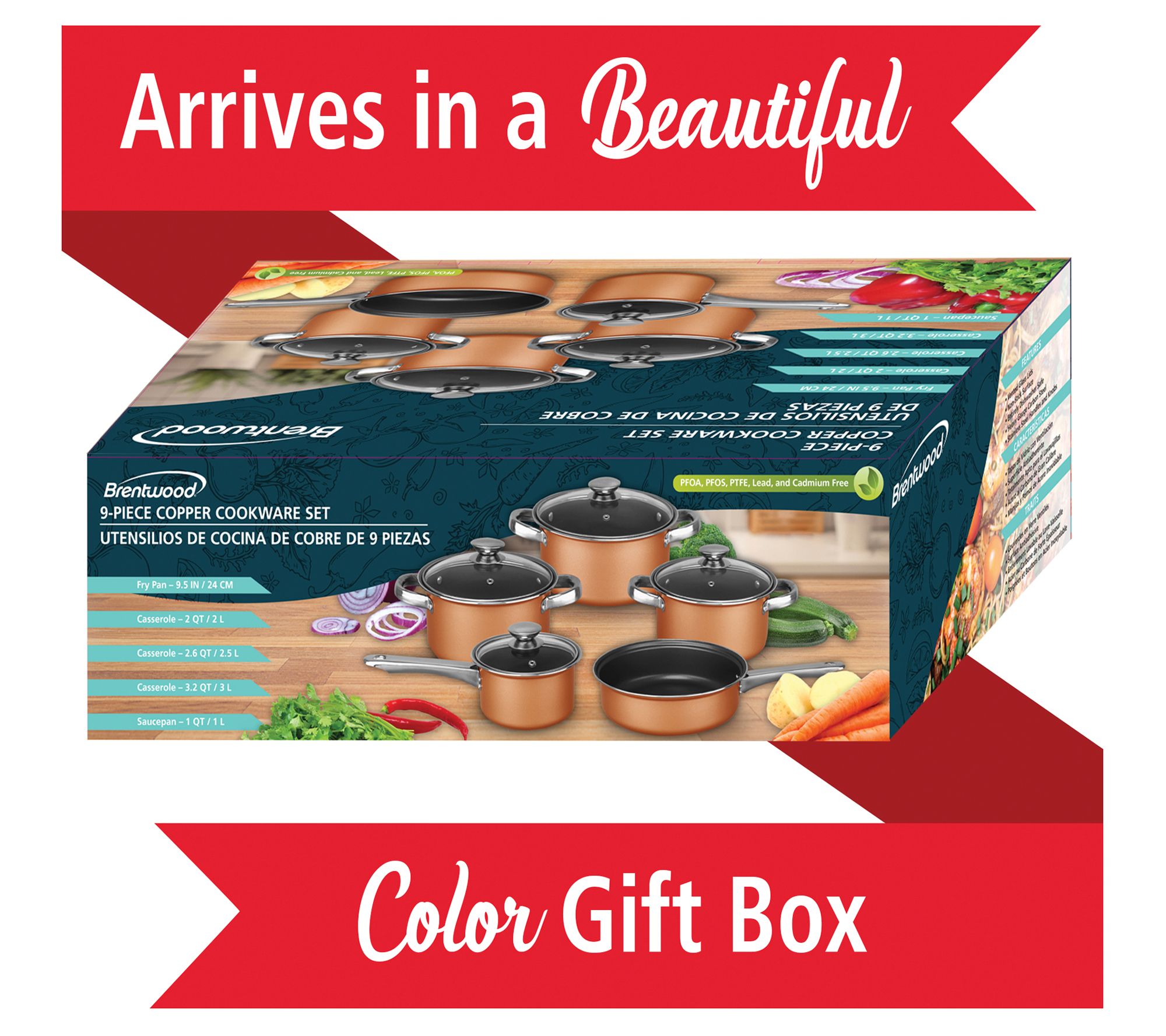 Make all your favorite meals with this complete cookware set. Enjoy delicious casseroles, braised meats, boiled vegetables, and more with this nonstick copper cookware. From Brentwood.