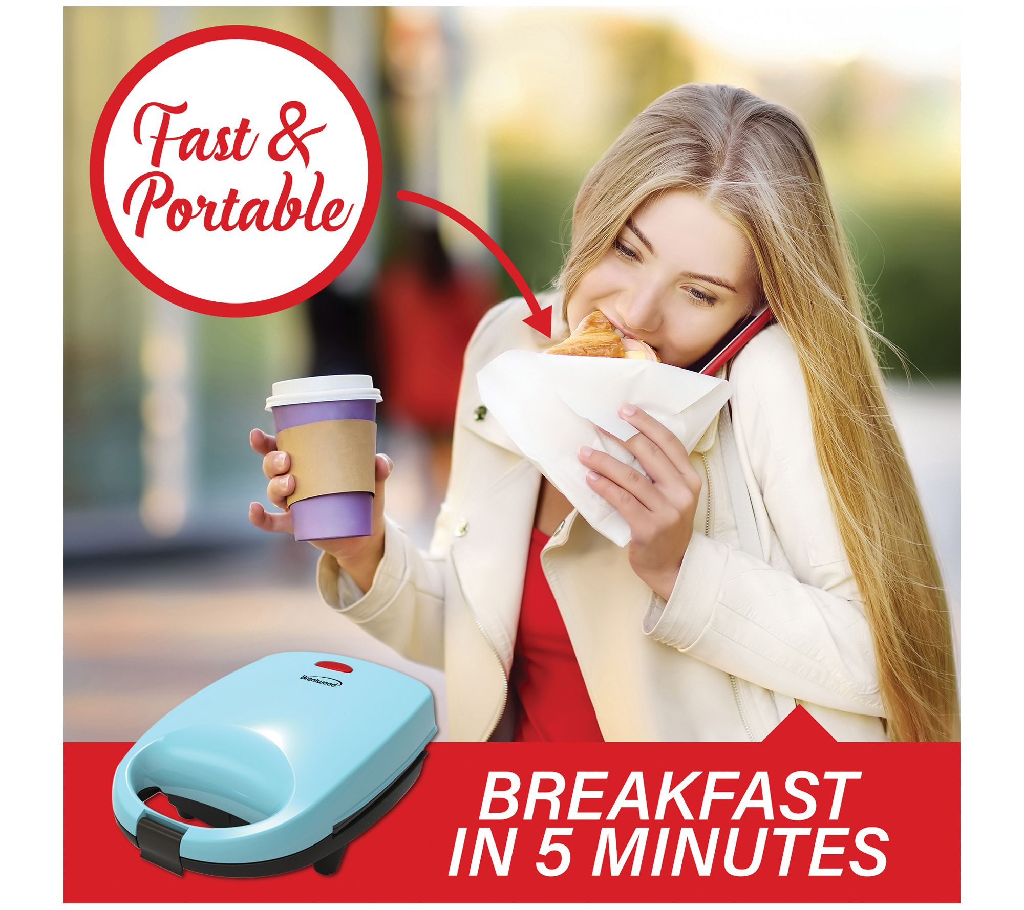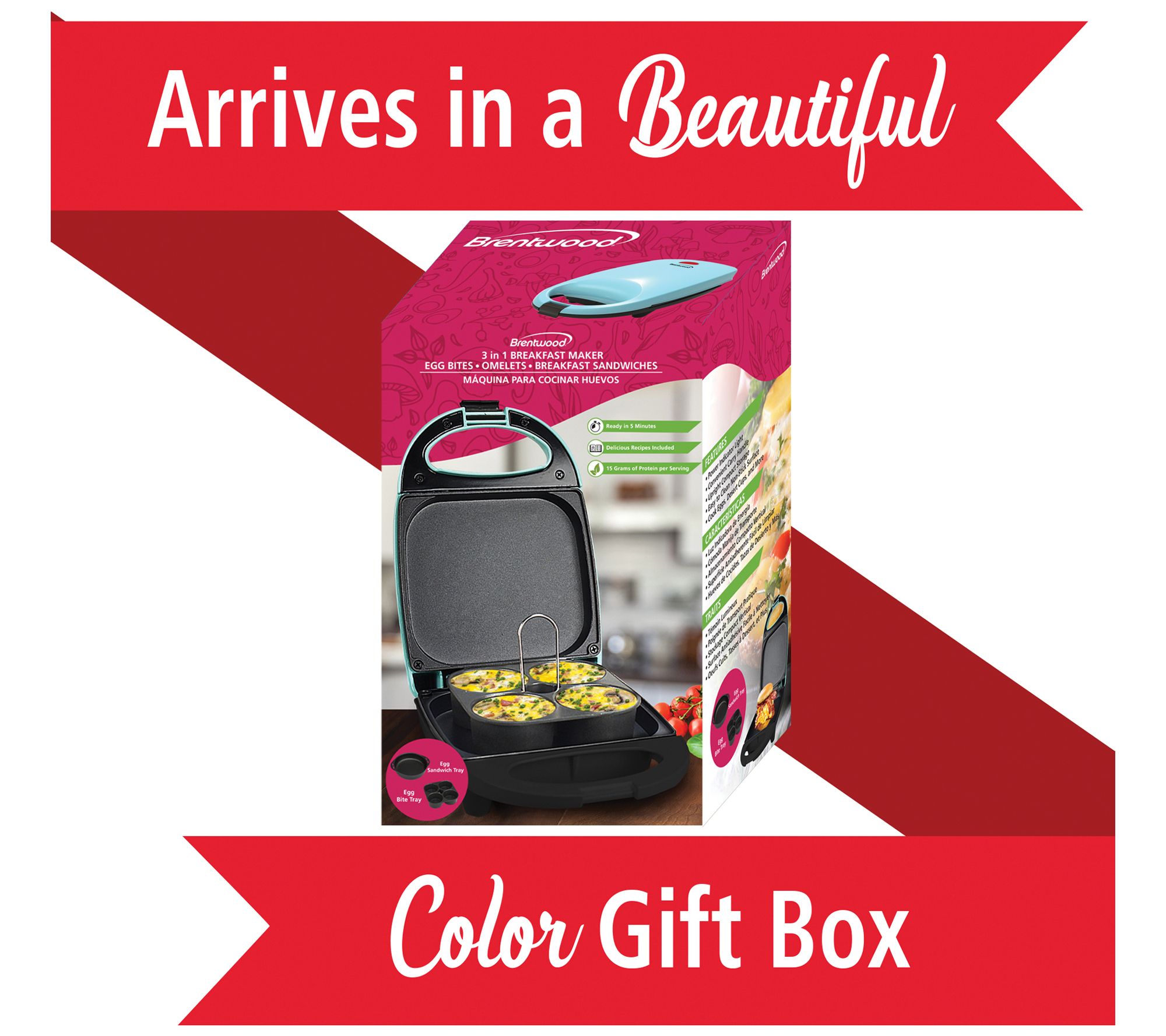 Use the Blue Brentwood Mini Sous Vide Style Egg Bite Maker to make your favorite cafe-style egg bites. They're ideal and ready in as littleas 5 minutes. It features a nonstick surface, power indicator light, locking lid, carry handle, and compact upright storage. Recipes are included! DIM: 8.5'' x 5.5'' x 3.5'';Egg cooker, omelet pan, Egg bite pan, Tray handle, Instruction manual;Egg cooker, omelet pan, Egg bite pan, Tray handle, Instruction manual;Egg cooker, omelet pan, Egg bite pan, Tray handle, Instruction manual
