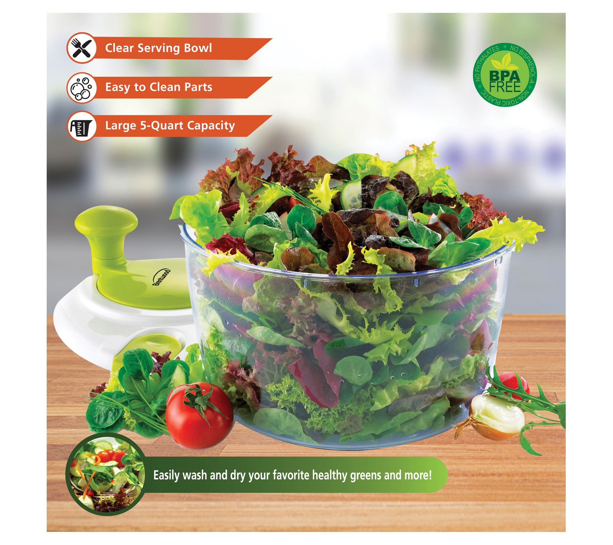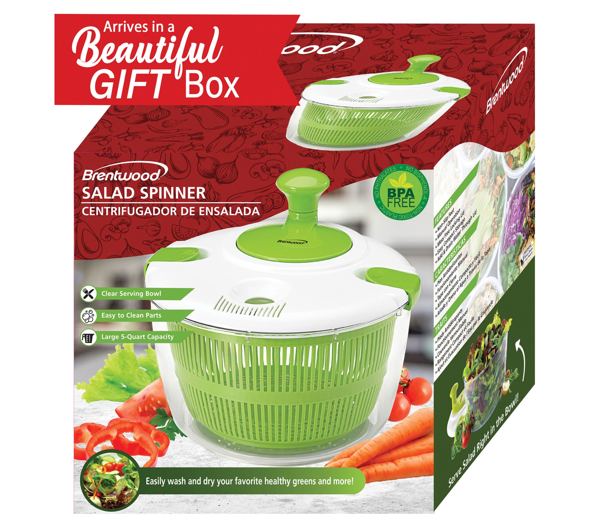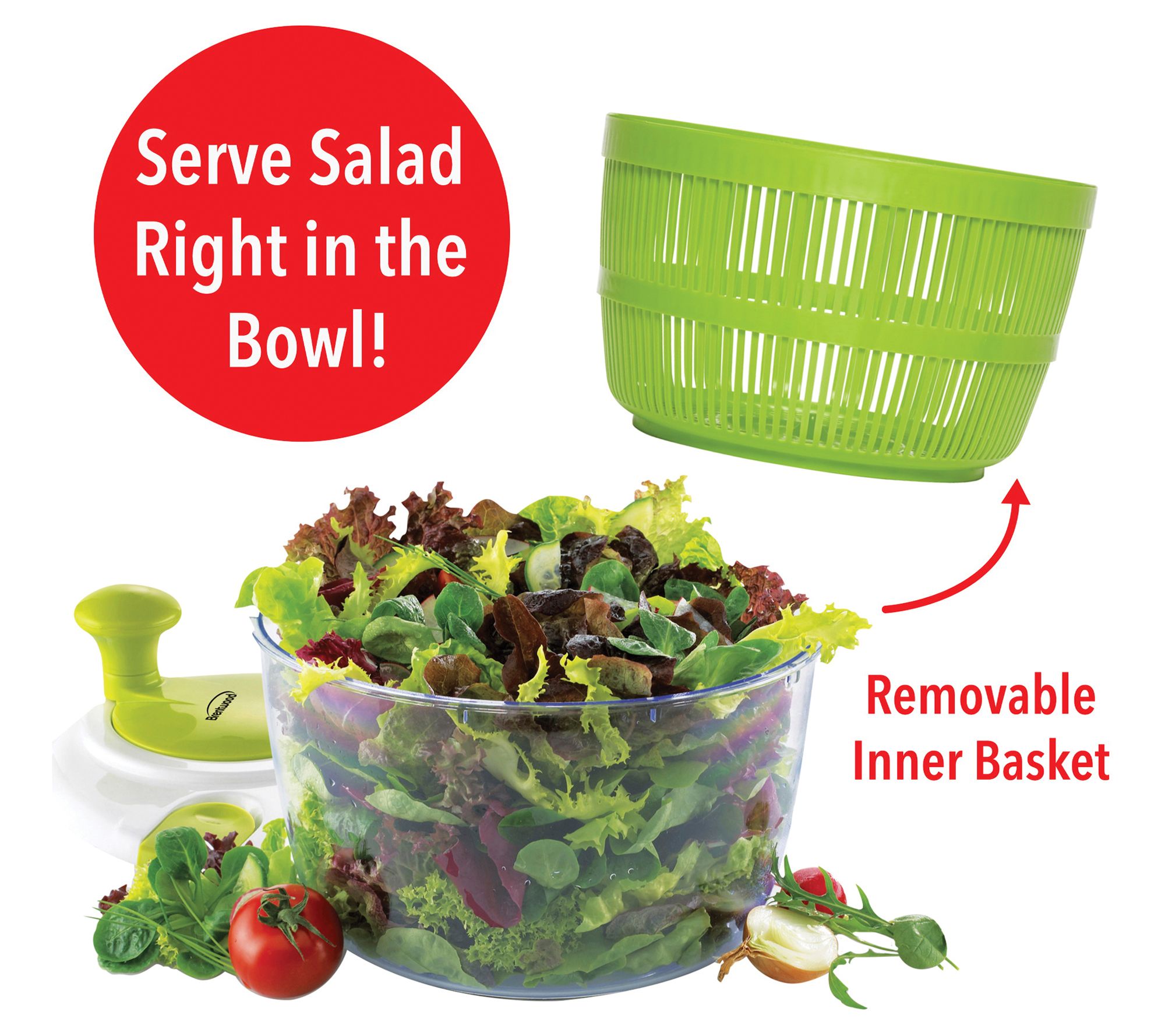 Brentwood Salad Spinner with 5-Qt. Serving Bowl