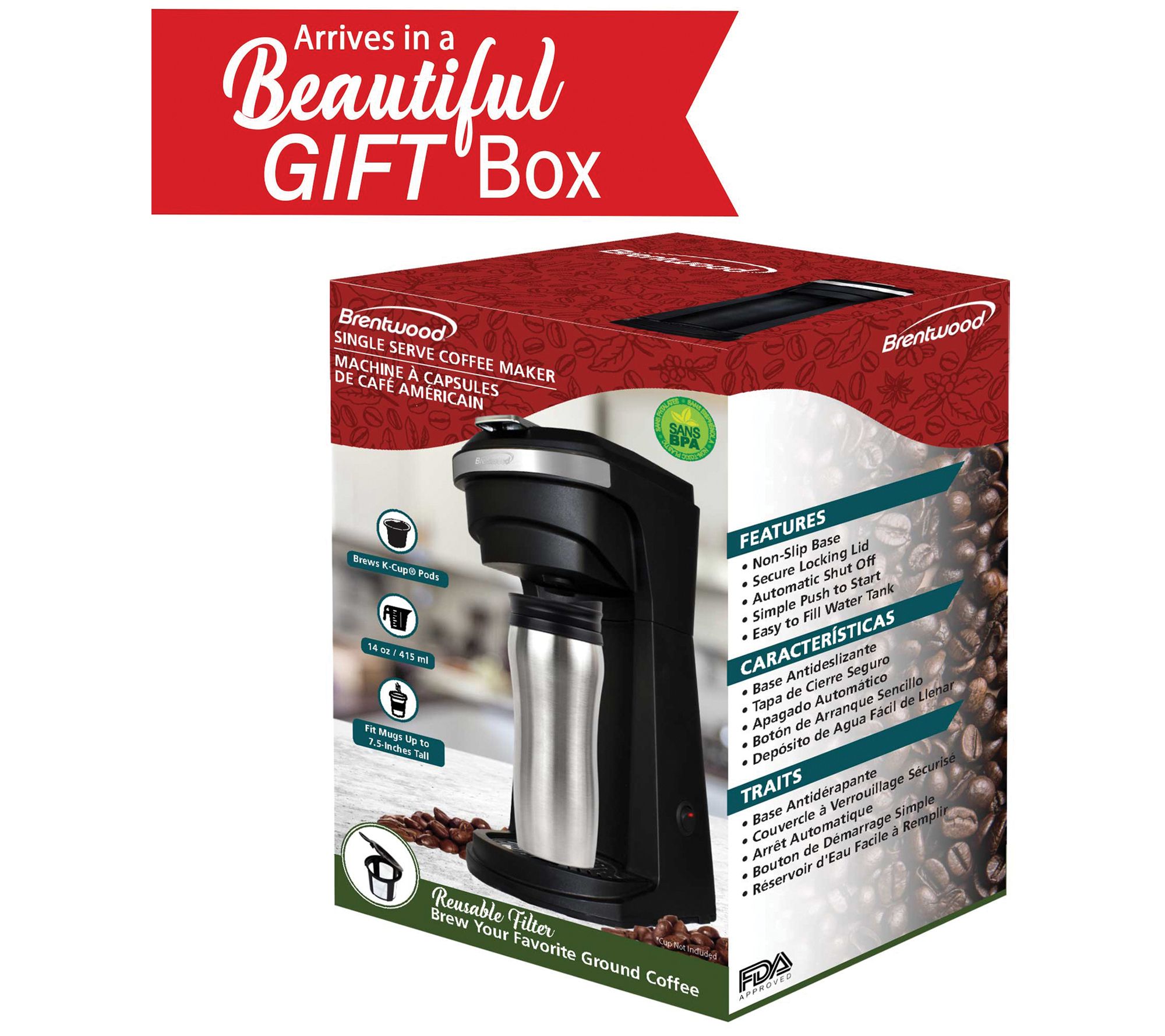 Brentwood Singl e-Serve Coffee Maker w/ Reusab le Filter Baske
