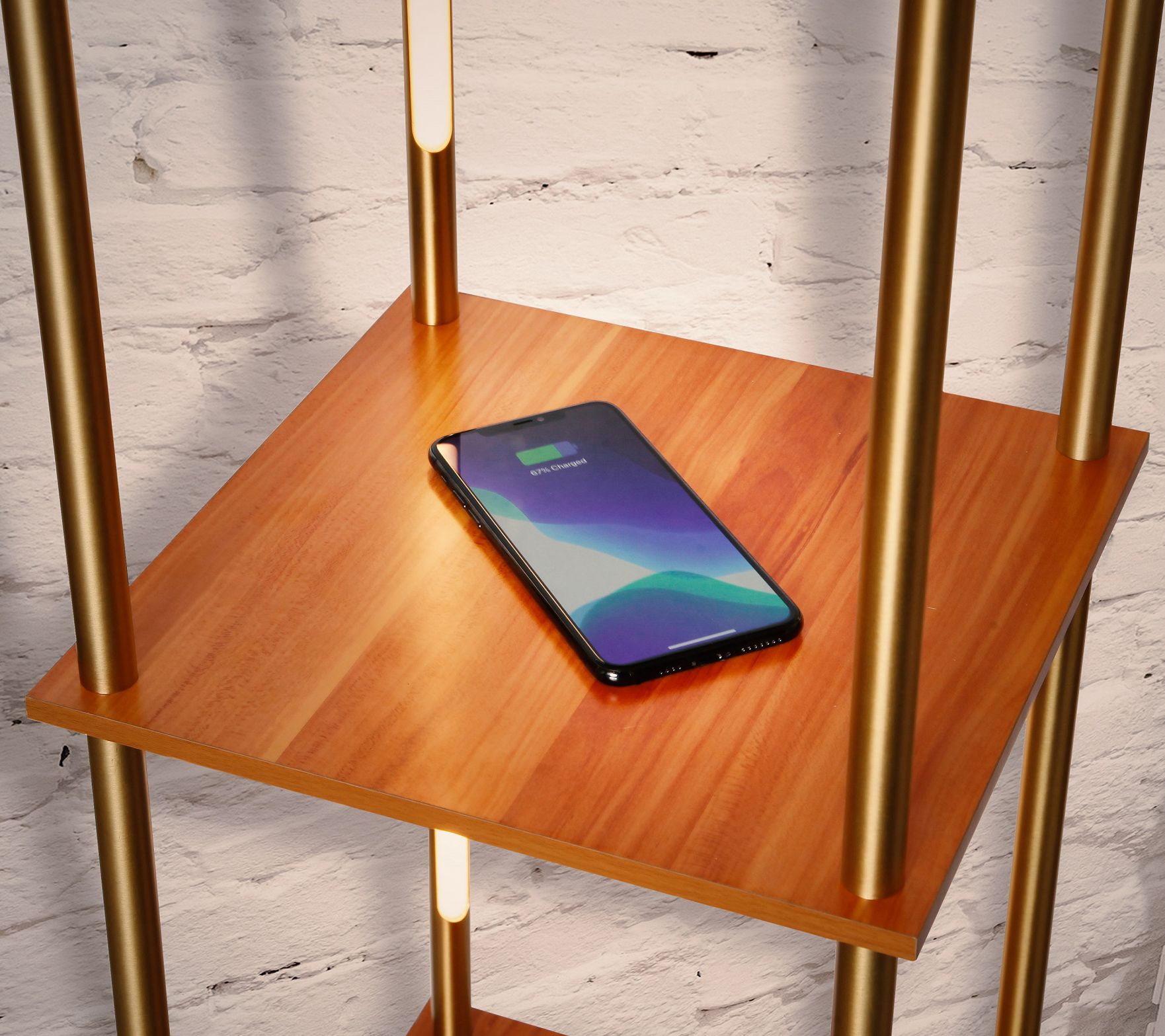 Two birds, one stone. This Aria LED floor lamp does double duty in your home with five shelves to hold electronic essentials or decorative pieces, and four pole-style bulbs to illuminate your space. From Brightech.