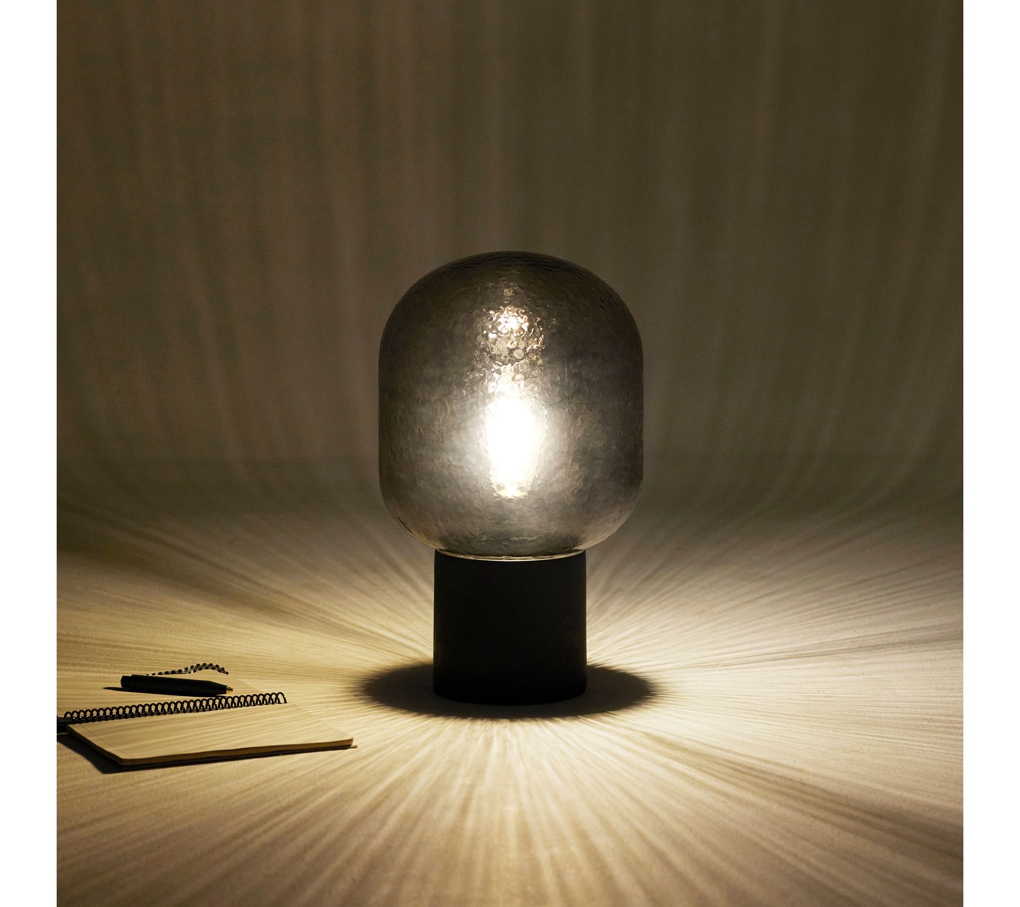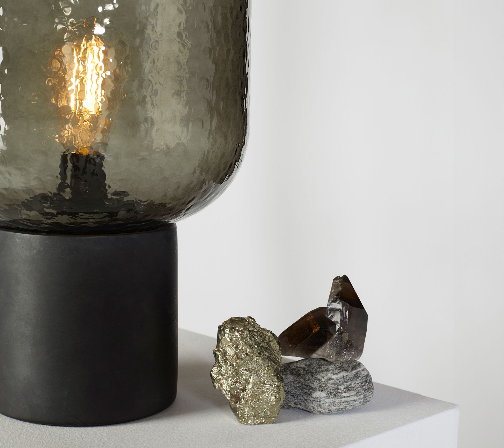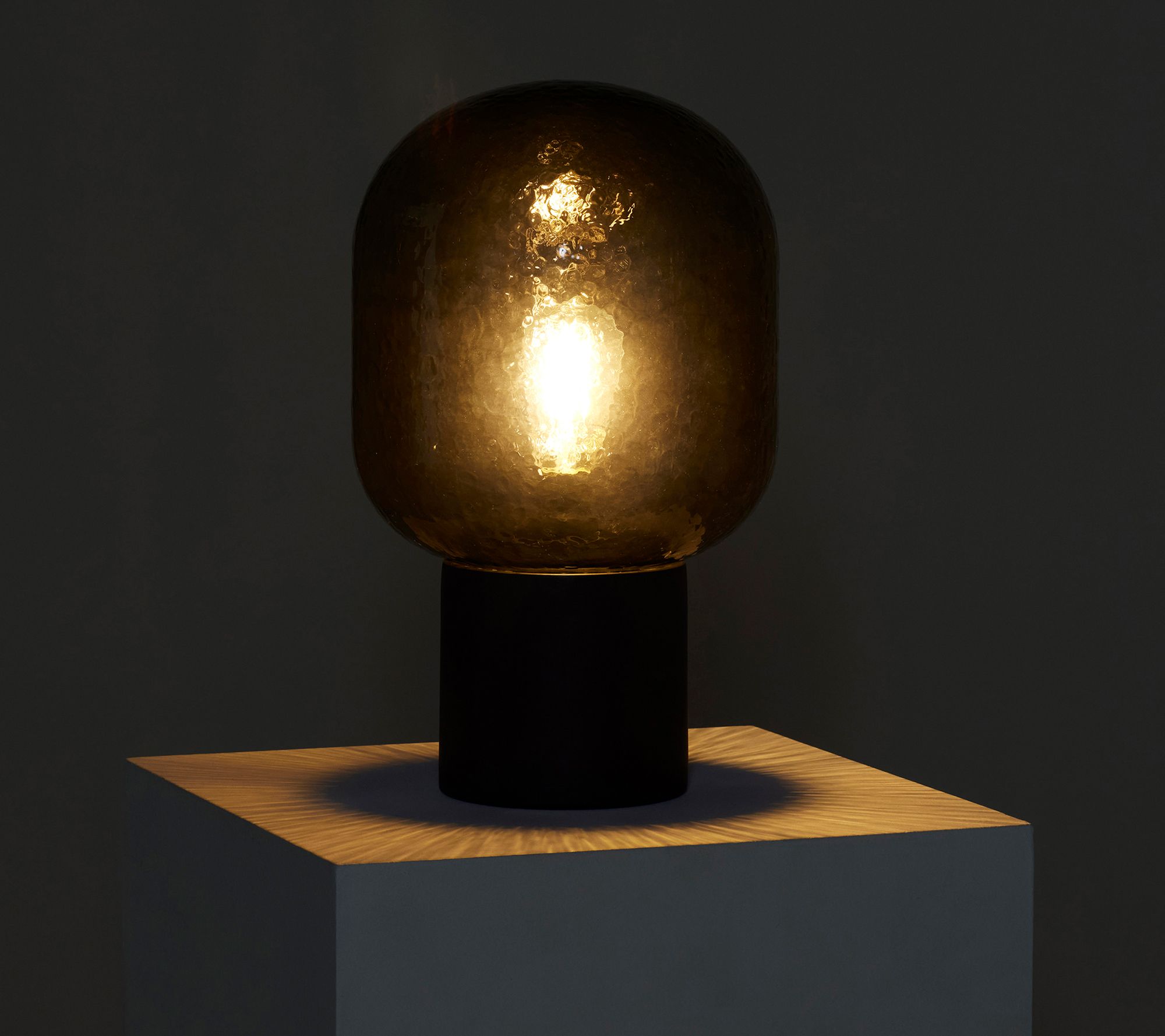• Includes black cement lamp base, glass shade, and bulb