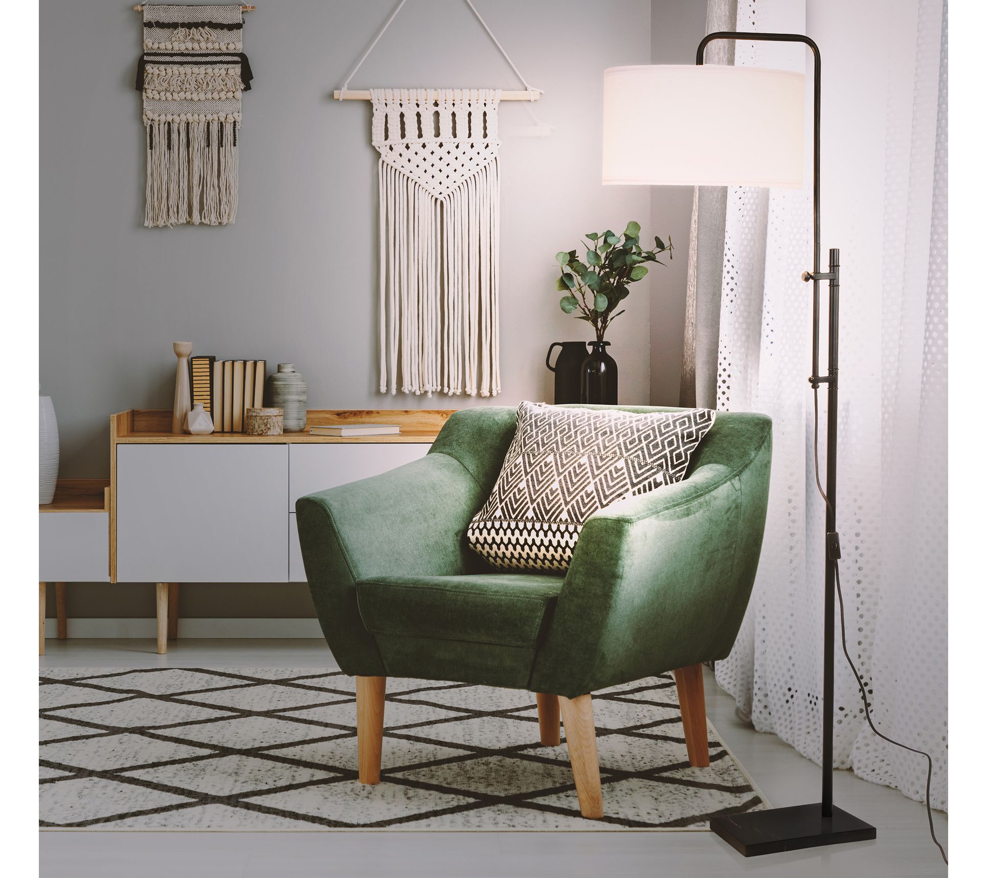 Add a tasteful touch to any bedroom, living room, or home office with the Leo LED arc floor lamp. From Brightech.