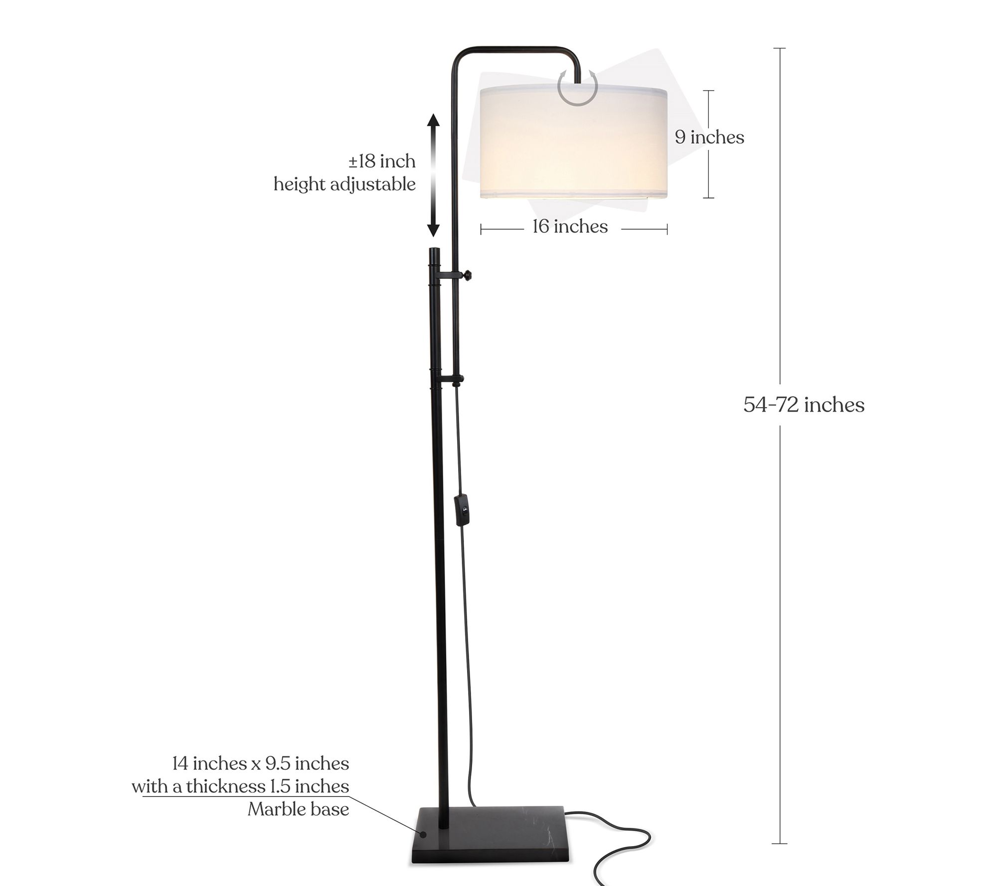 • Measures 19" x 16" x 54" to 72"