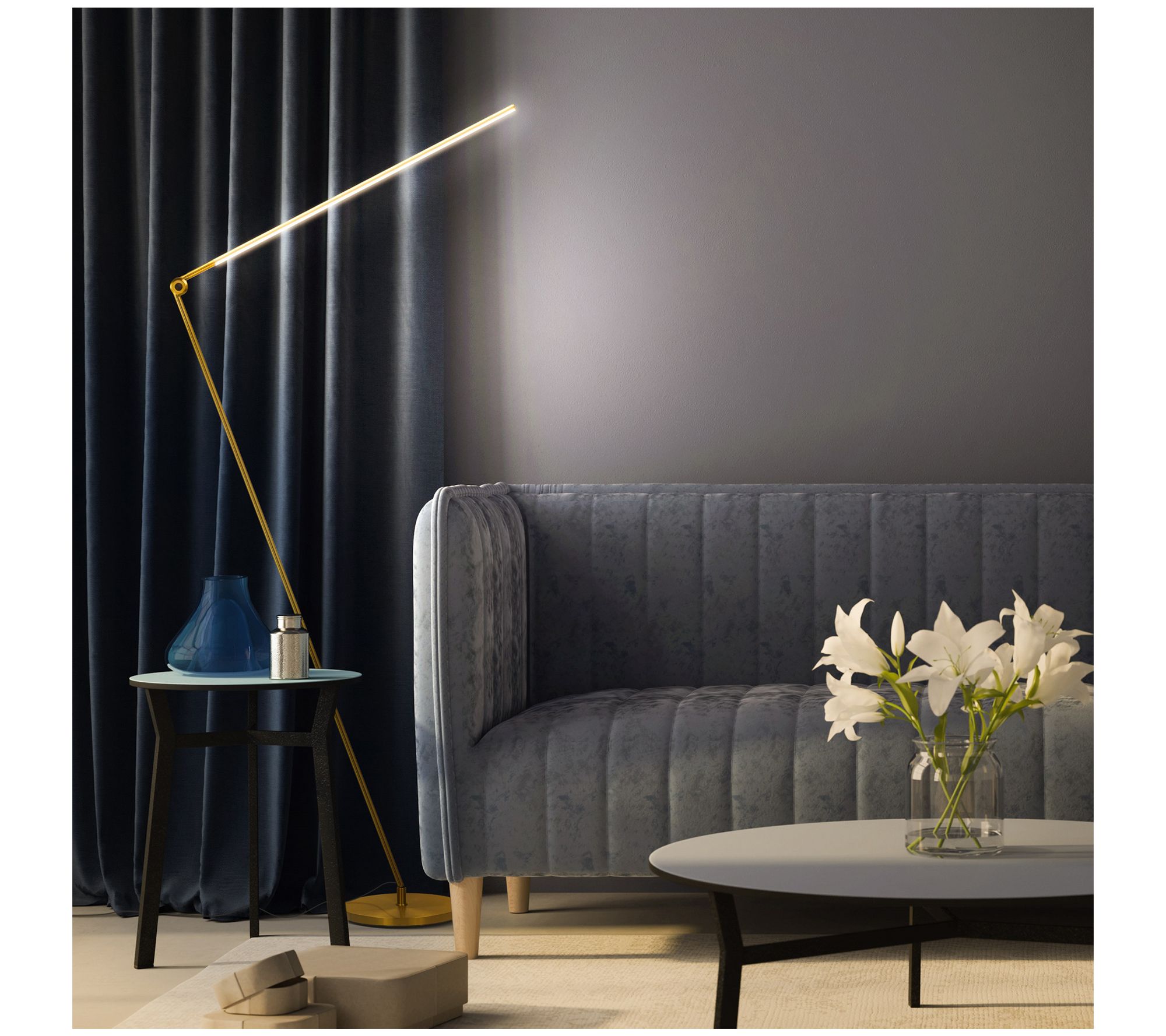 Fill your room with light while saving space with this LED floor lamp boasting a sleek futuristic design. From Brightech.