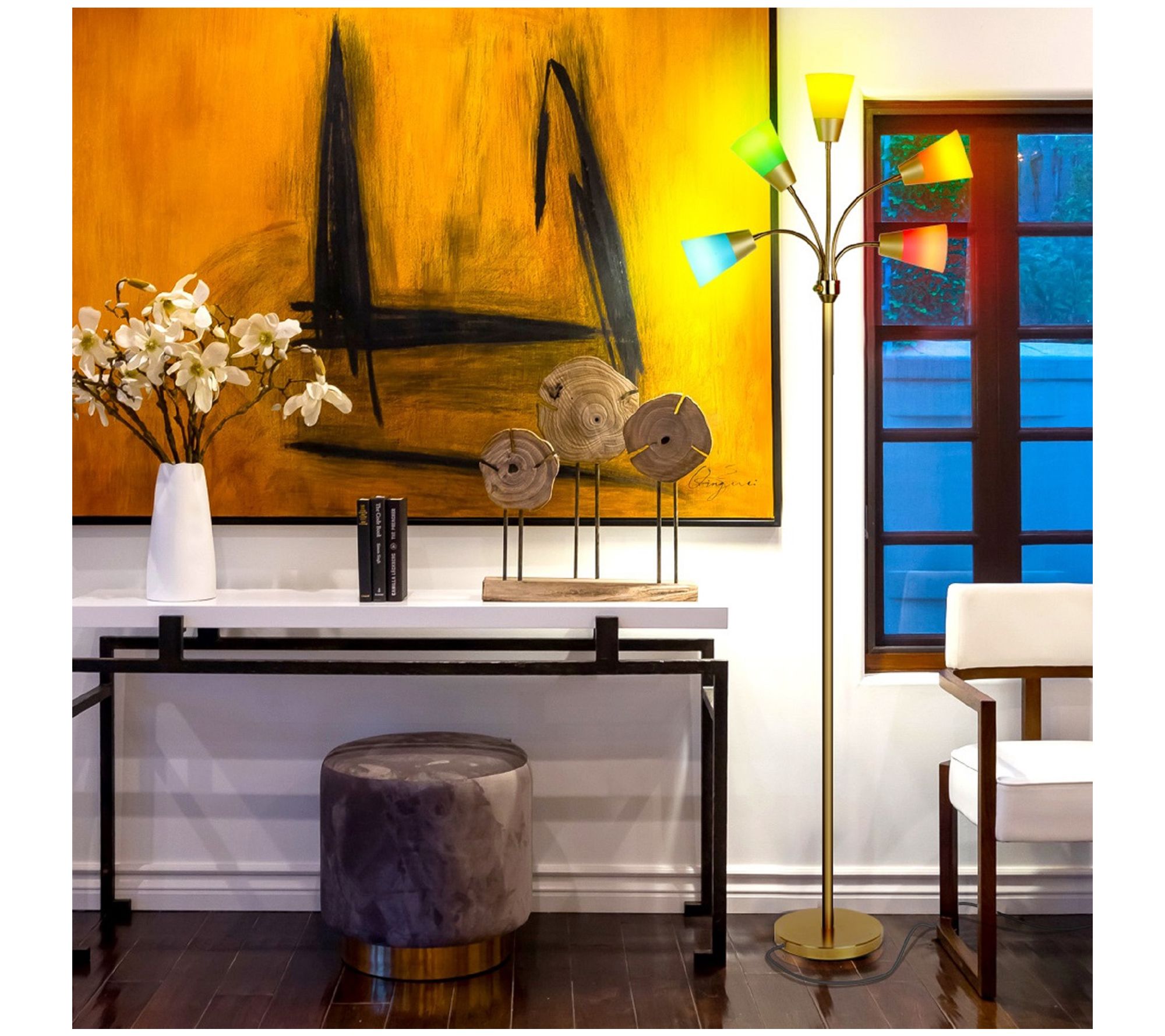 Customize the atmosphere of your home or office with the multiple lighting options of this unique floor lamp. From Brightech.