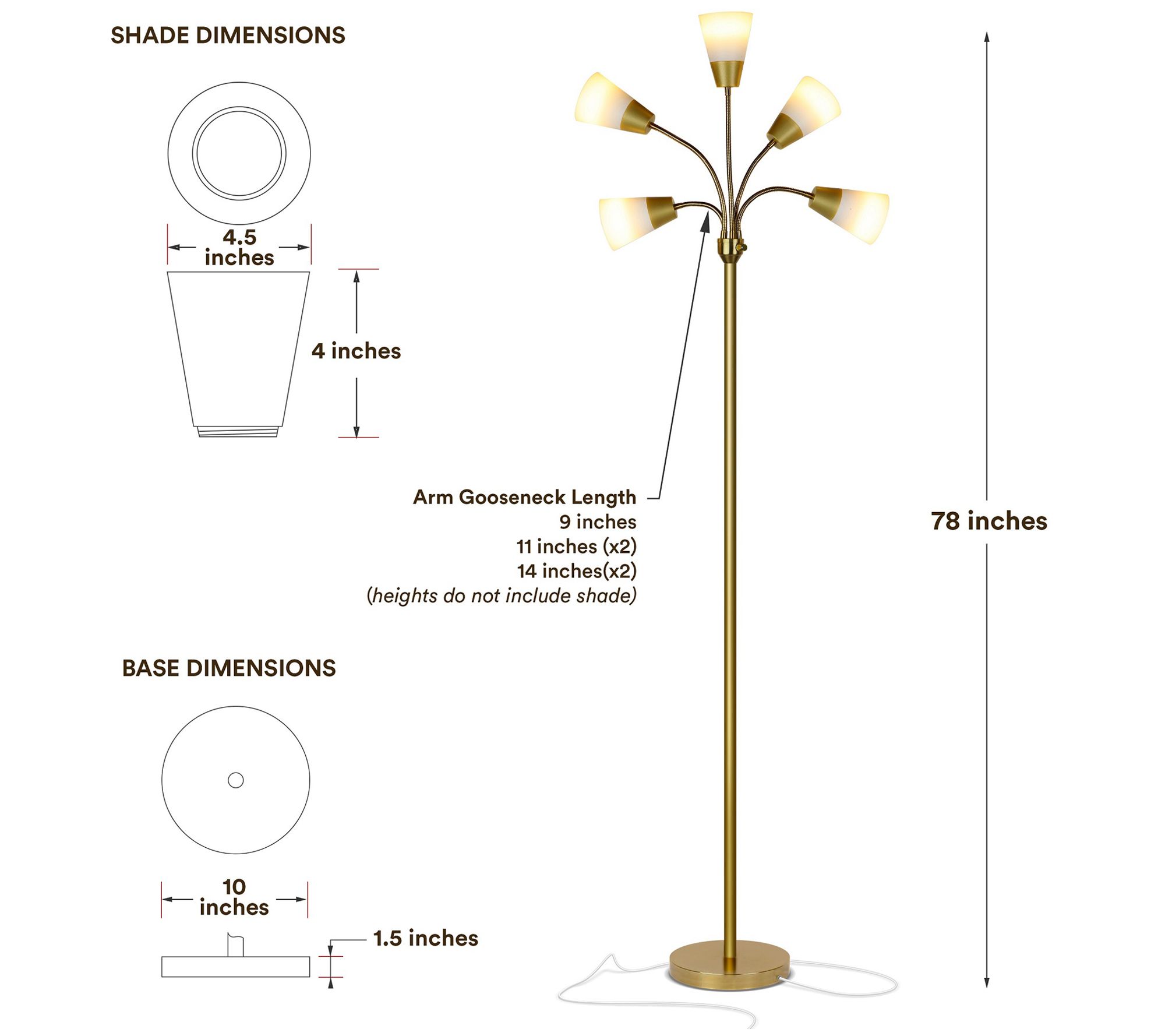 • Five interchangeable shades and five adjustable gooseneck arms