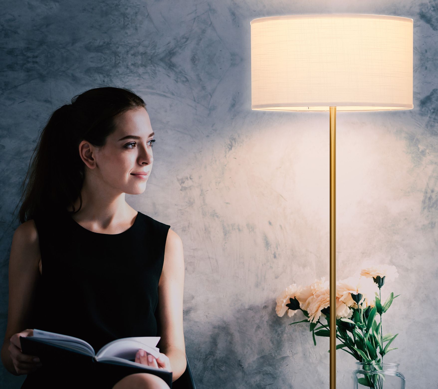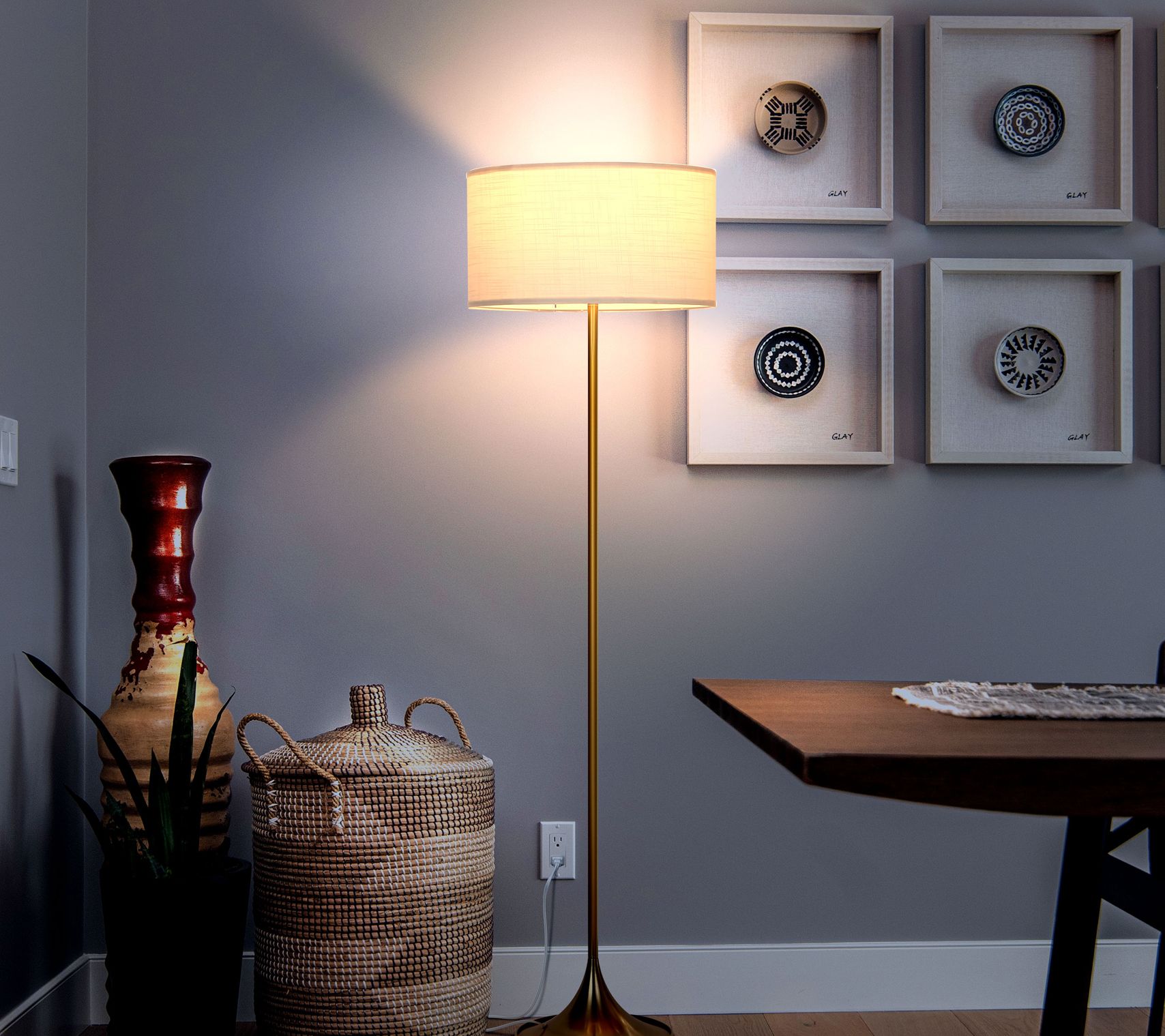 Standing 5'H with an elegant brass finish, the Quinn floor lamp adds a splash of refined flair to any bedroom, living room, or home office. From Brightech.