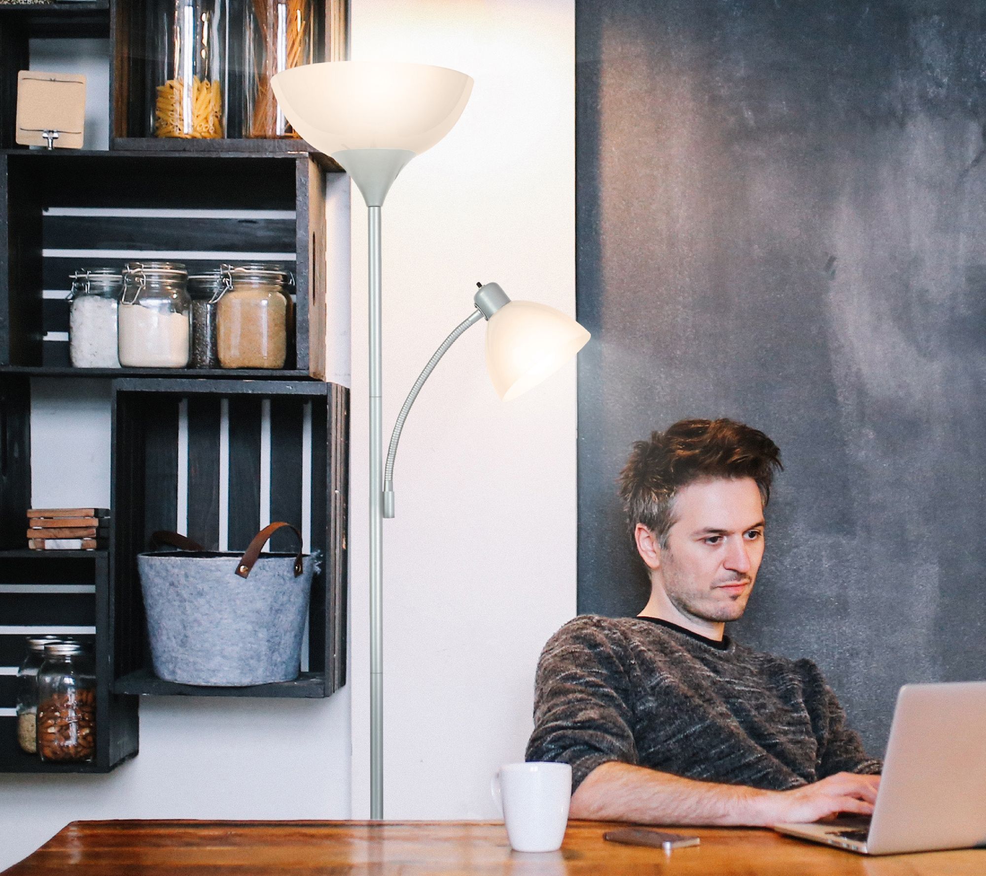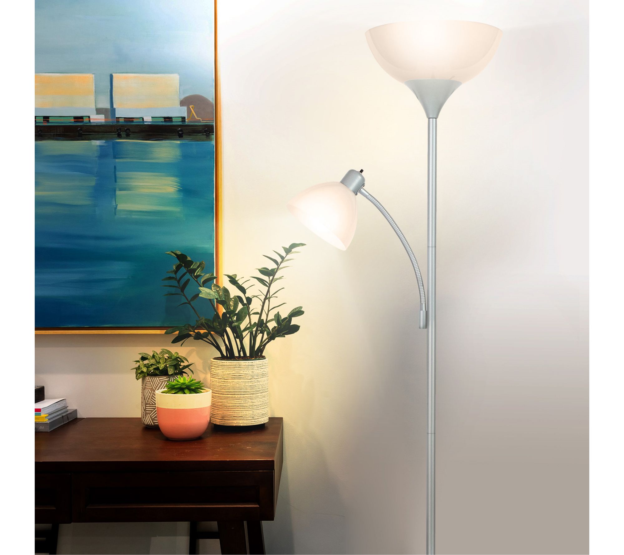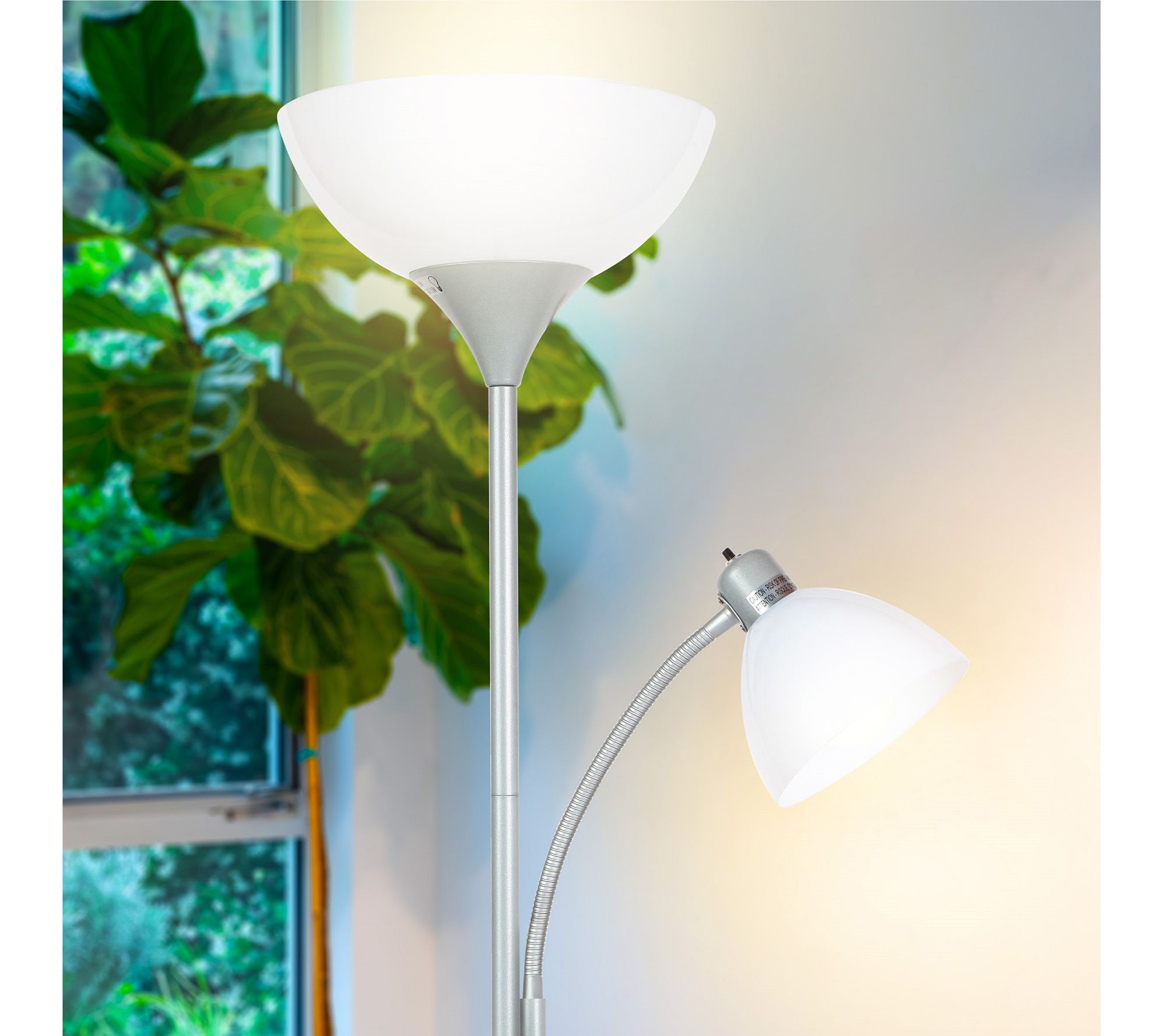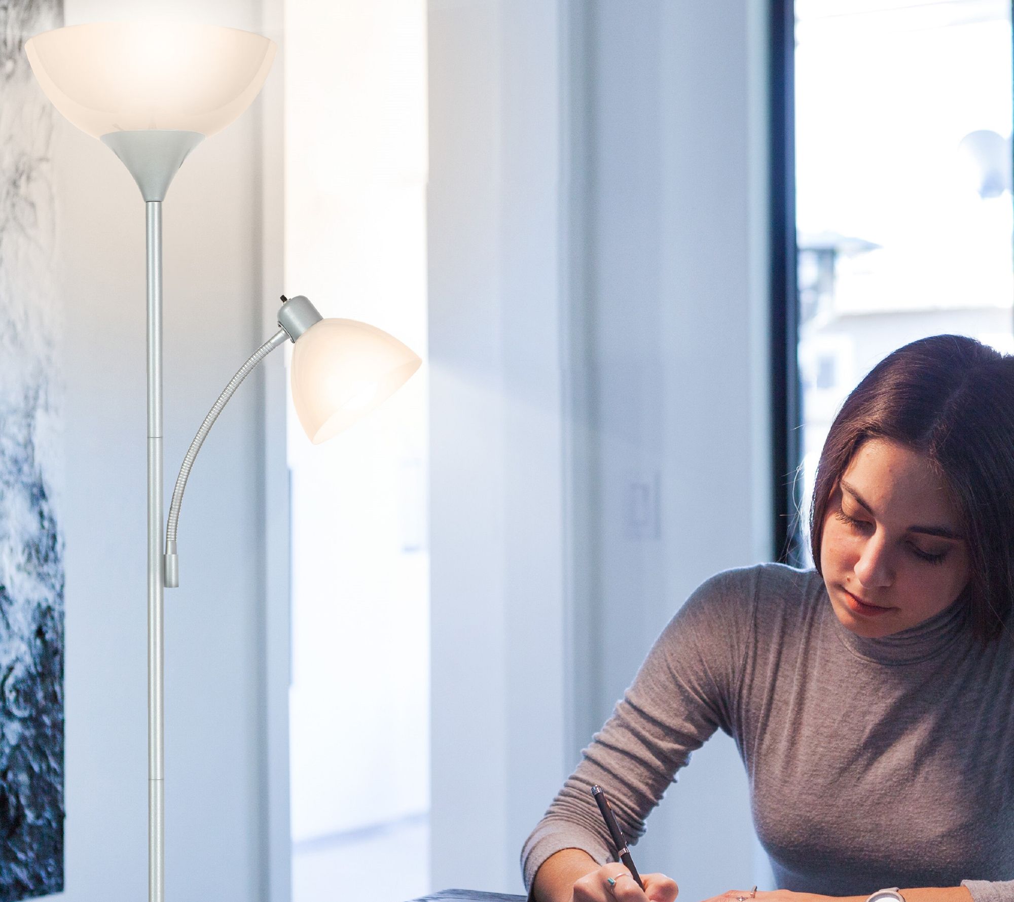 Capable of both mood and task lighting, Sky Dome Plus LED torchiere floor lamp lights your bedroom, living room, or office in style. From Brightech.