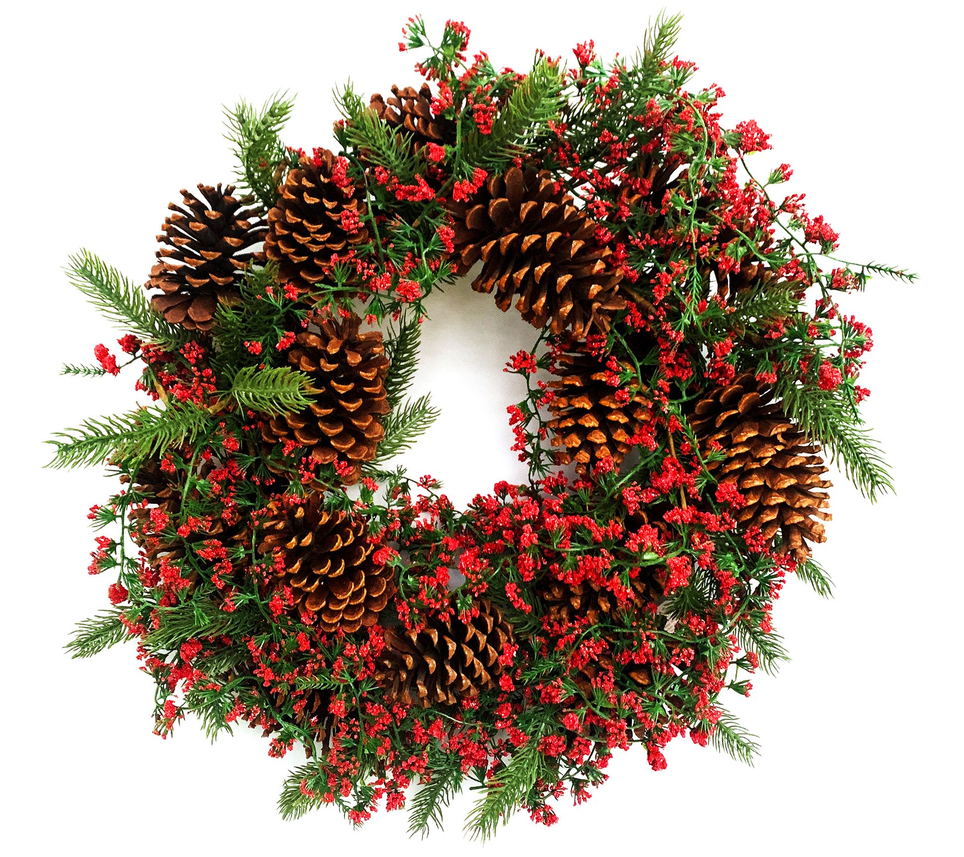 Brite Star 22" Pine Wreath with Berry and Pinecone Accents