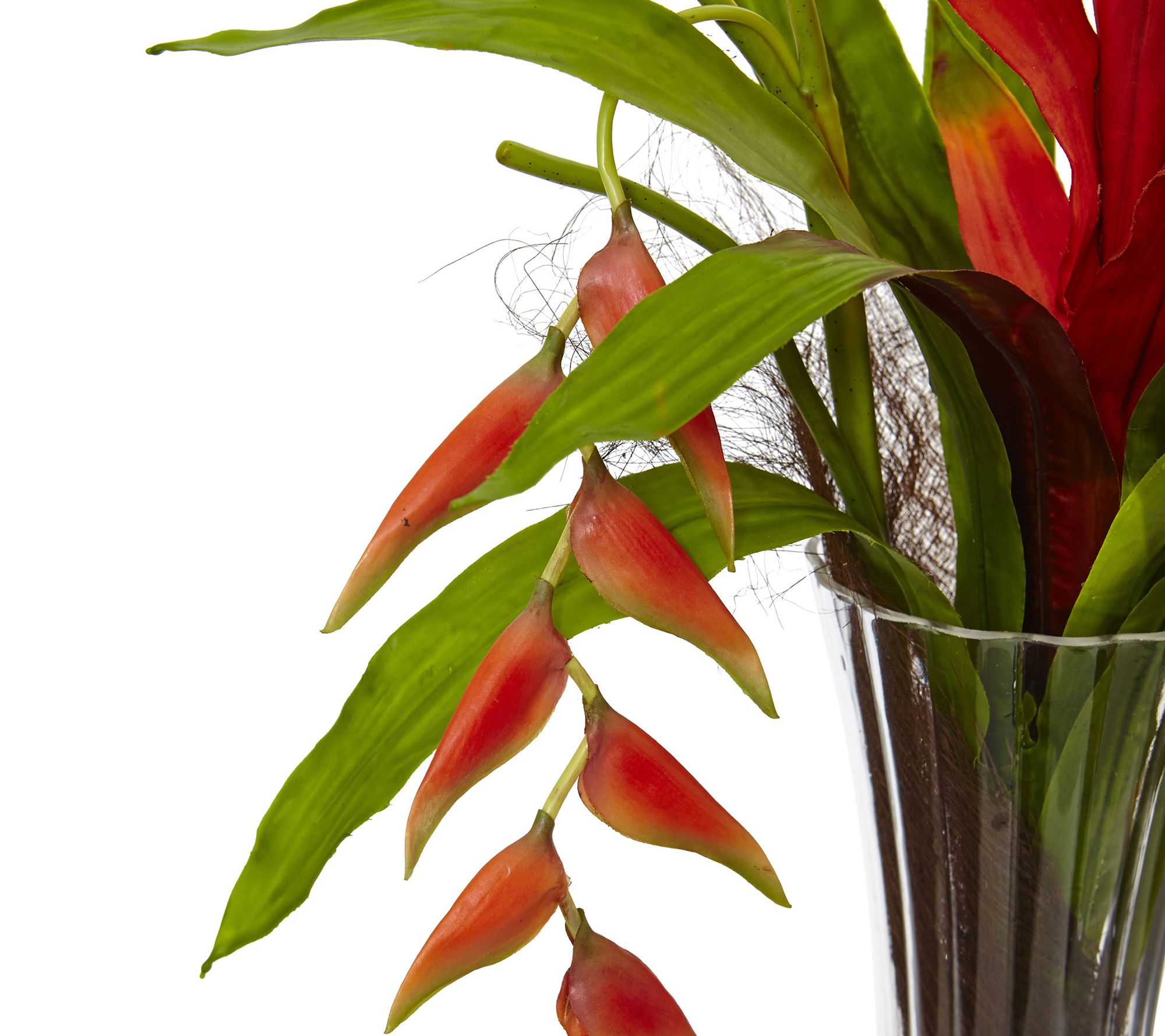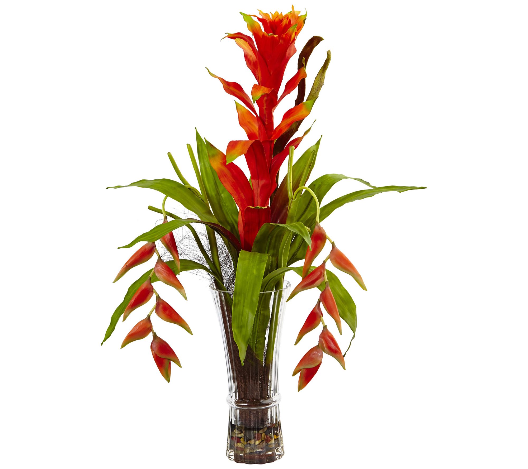 Bromeliad and Heliconia in Vase by Nearly Natural