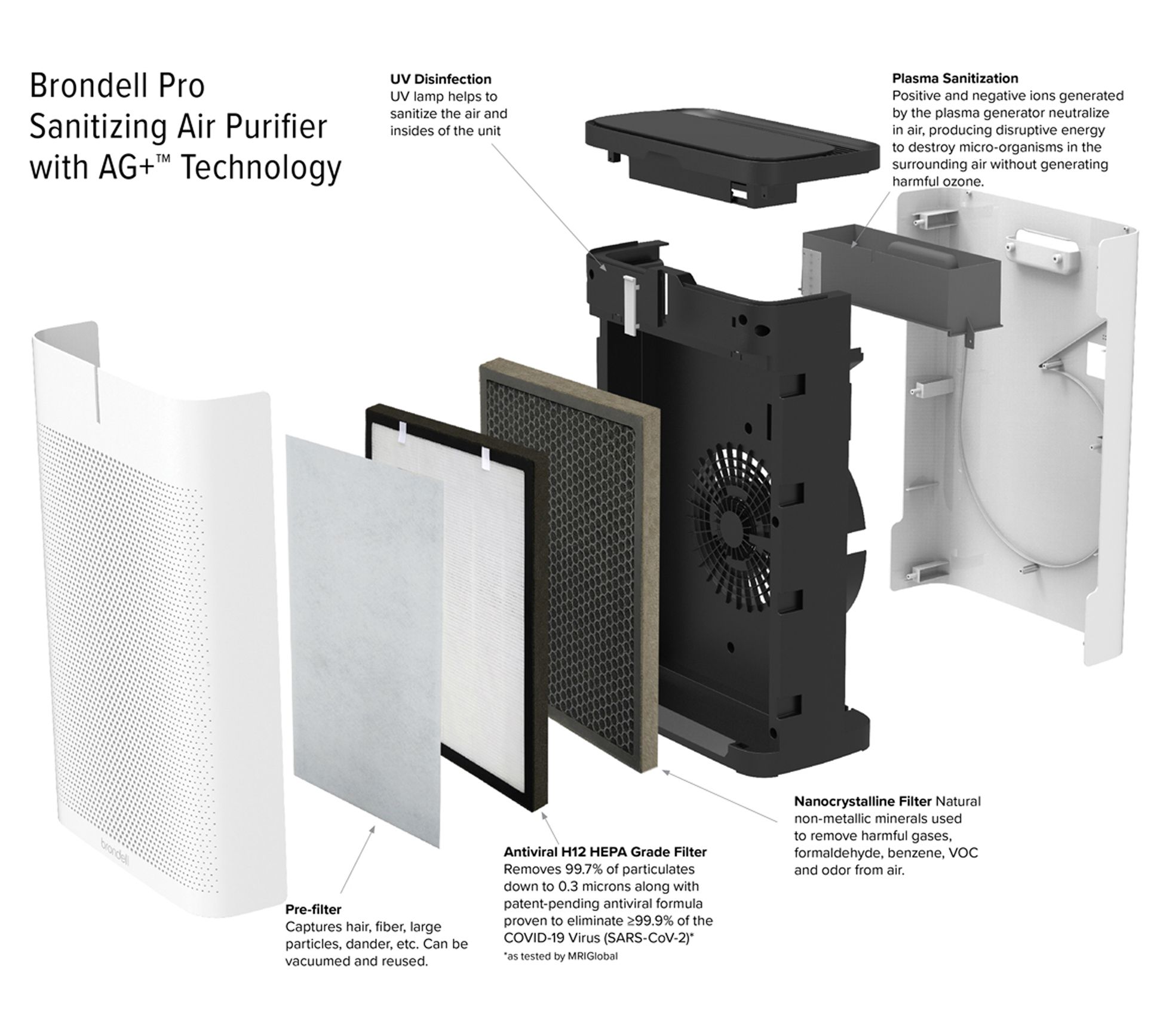 Brondell Pro Sanitizing Air Purifier with AG+ T echnology