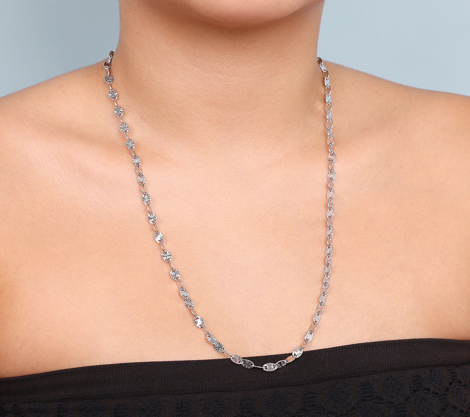 Whether worn solo or layered with other favorite pieces, this 22" confetti chain necklace adds a touch of shimmer and playfulness to any look, from daytime outfits to evening ensembles. From Bronzo Italia®.
