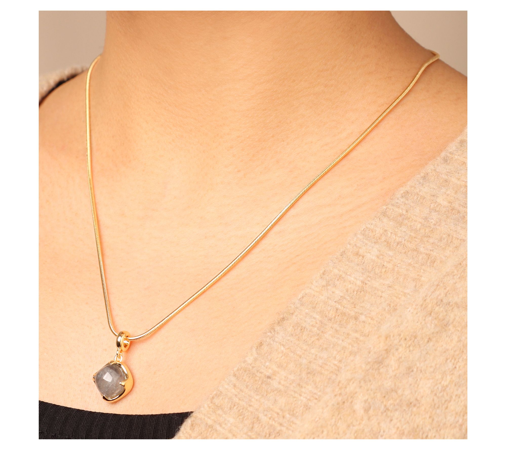 Whether you're catching up with friends over brunch or adding polish to your everyday look, this celestial-inspired pendant brings a hint of luxury with its checkerboard cushion-cut gemstone centerpiece. The basket setting lets the gemstone shine while the snake chain sits effortlessly at your neckline, making it a go-to accessory that's as versatile as your calendar. From Bronzo Italia®.