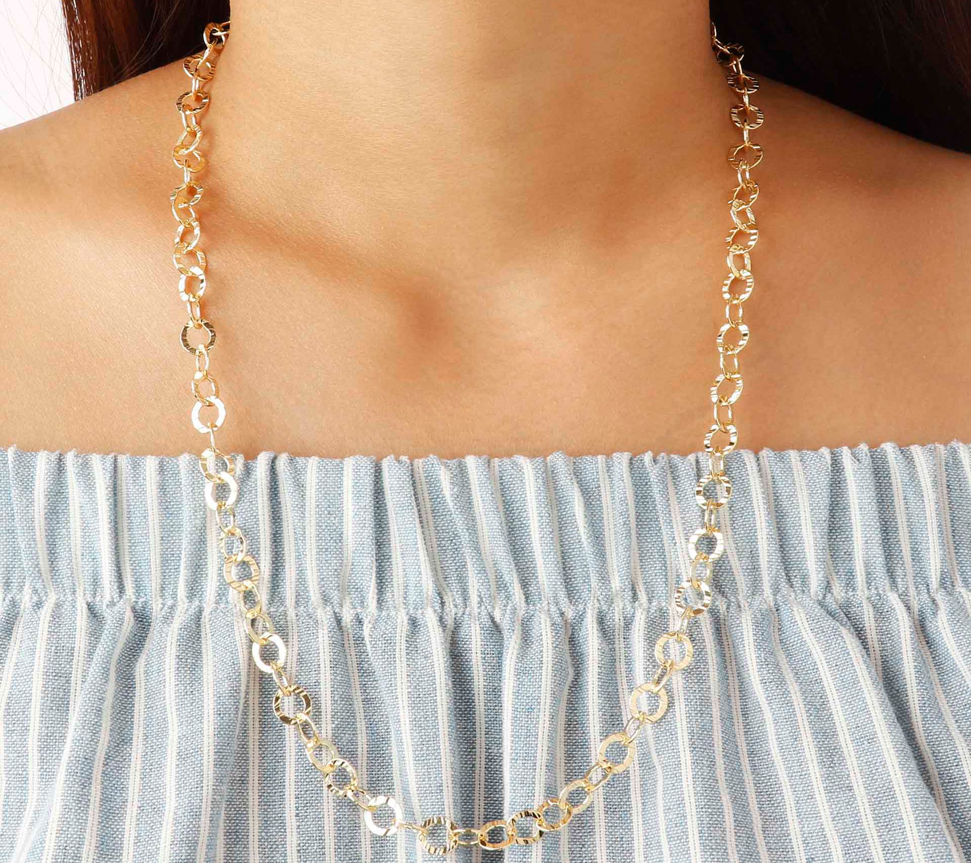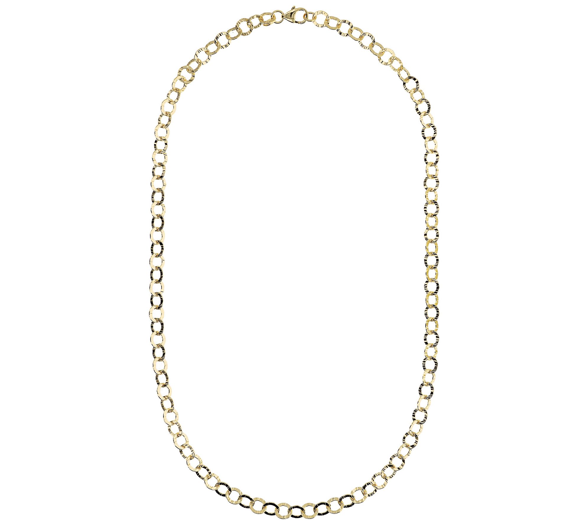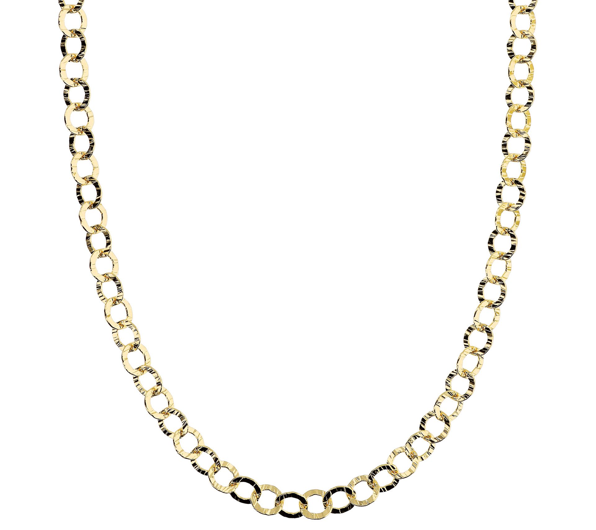 • Hammered circle link chain; polished finish