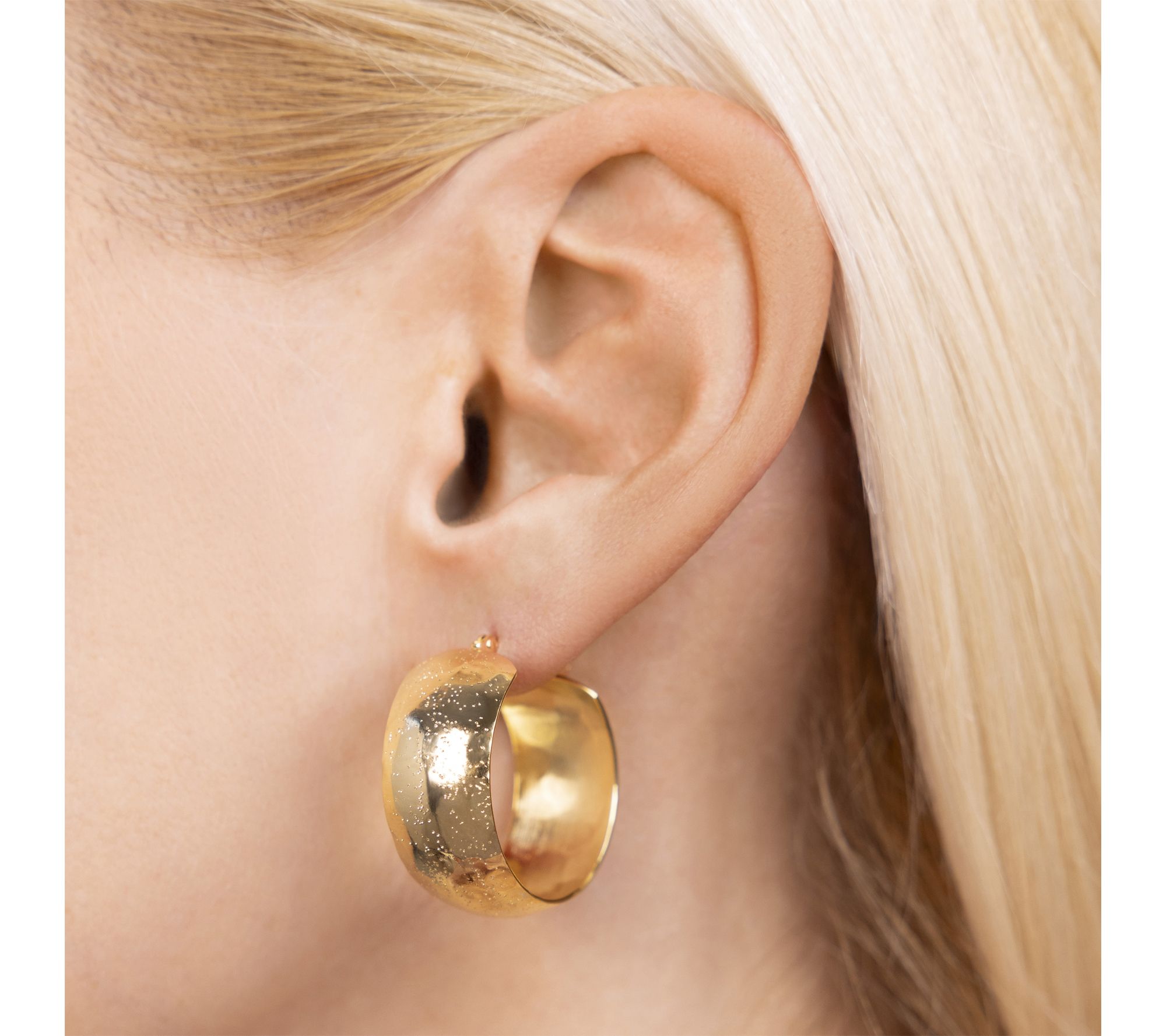 • Stardust texture adds shimmering detail; classic 1" hoop design; polished finish