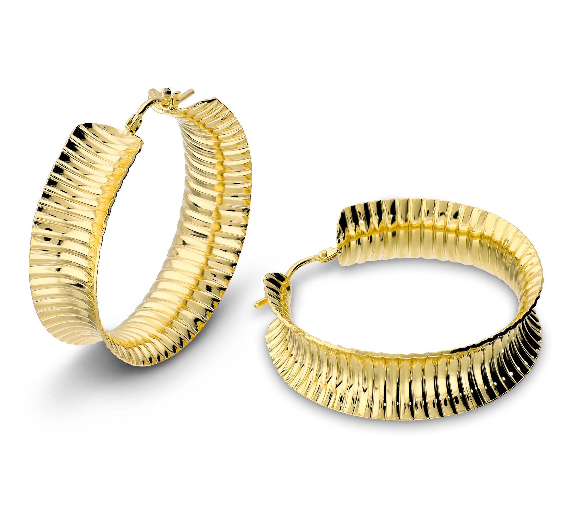 Bronzo Italia Striped Hoop Earrings, 18K Gold Plated