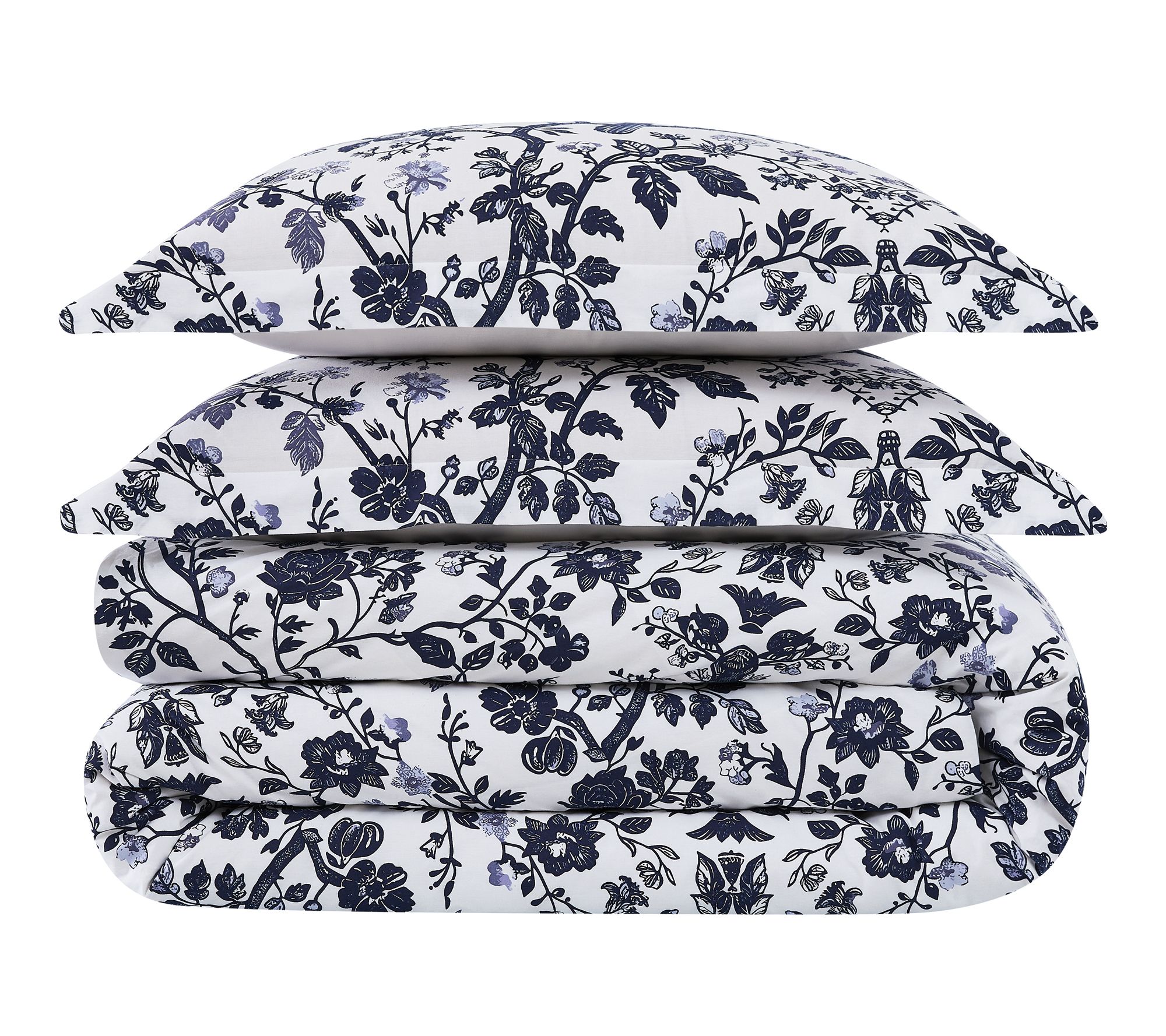 A gentle touch of fresh blossoms and softly textured stripes creates a restful retreat in your bedroom with this king comforter set. Designed for year-round comfort, the plush down alternative fill keeps you cozy, while the crisp cotton percale offers a smooth, inviting feel. From Brooklyn Loom.