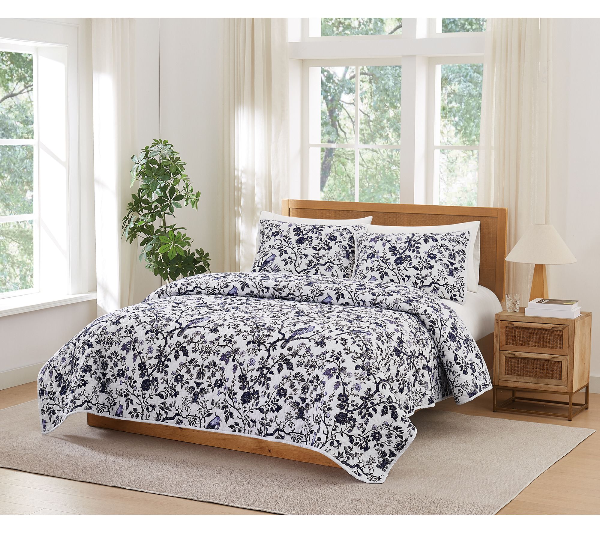 Refresh your bedroom with timeless charm and everyday comfort! The Brooklyn Loom Ava Floral Quilt Set delivers versatile style for the modern farmhouse lover, blending classic white and blue florals with subtle stripes. Its crisp design makes a beautiful statement in both traditional and contemporary settings -- whether you layer it with other linens or let it shine as a stand-alone centerpiece. From Brooklyn Loom.