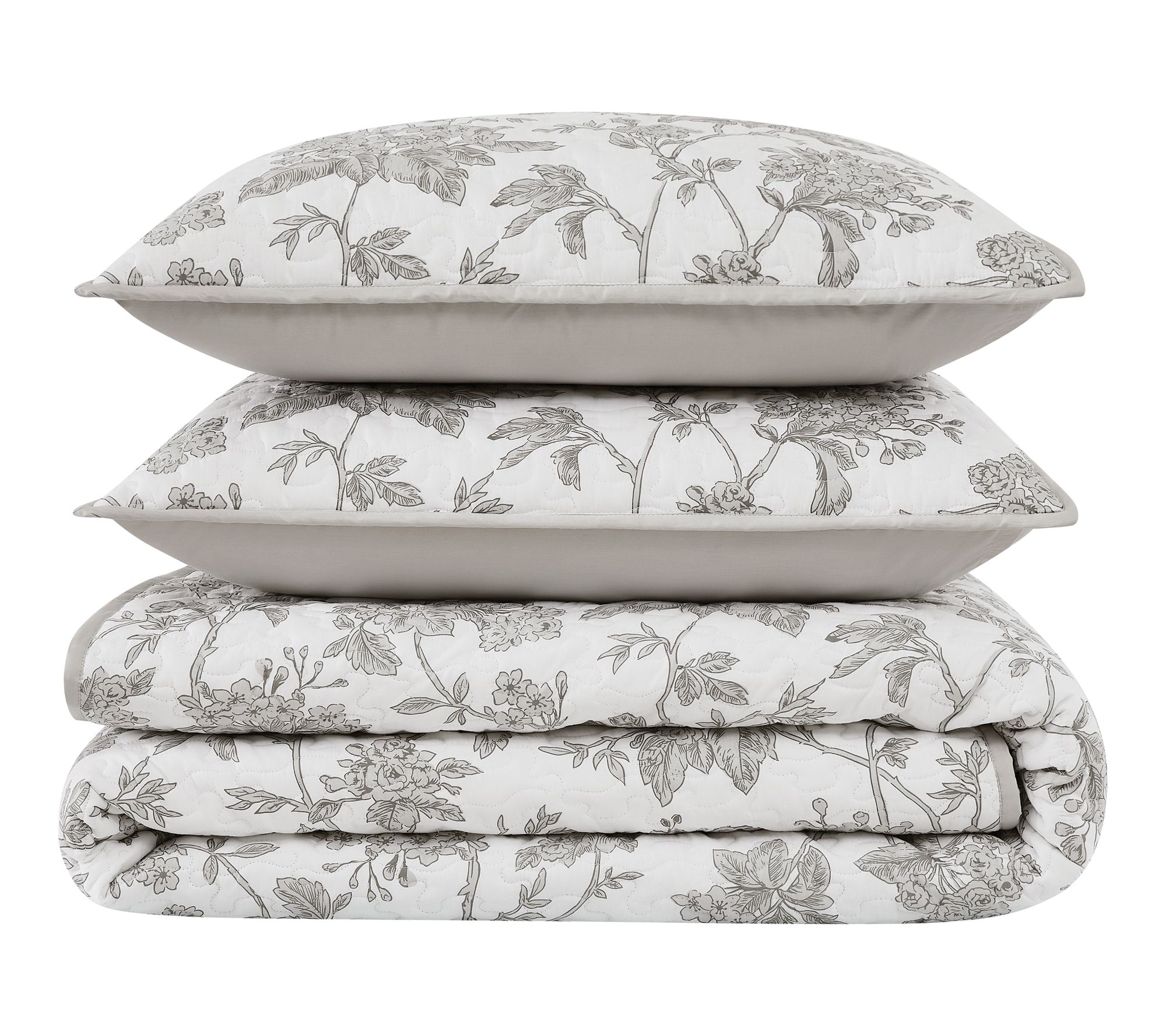 Refresh your bedroom with timeless elegance and effortless comfort. The Brooklyn Loom Mila Floral Quilt Set brings a classic touch with a delicate floral design in a serene White and Gray palette -- perfect for coordinating with any decor. From Brooklyn Loom.
