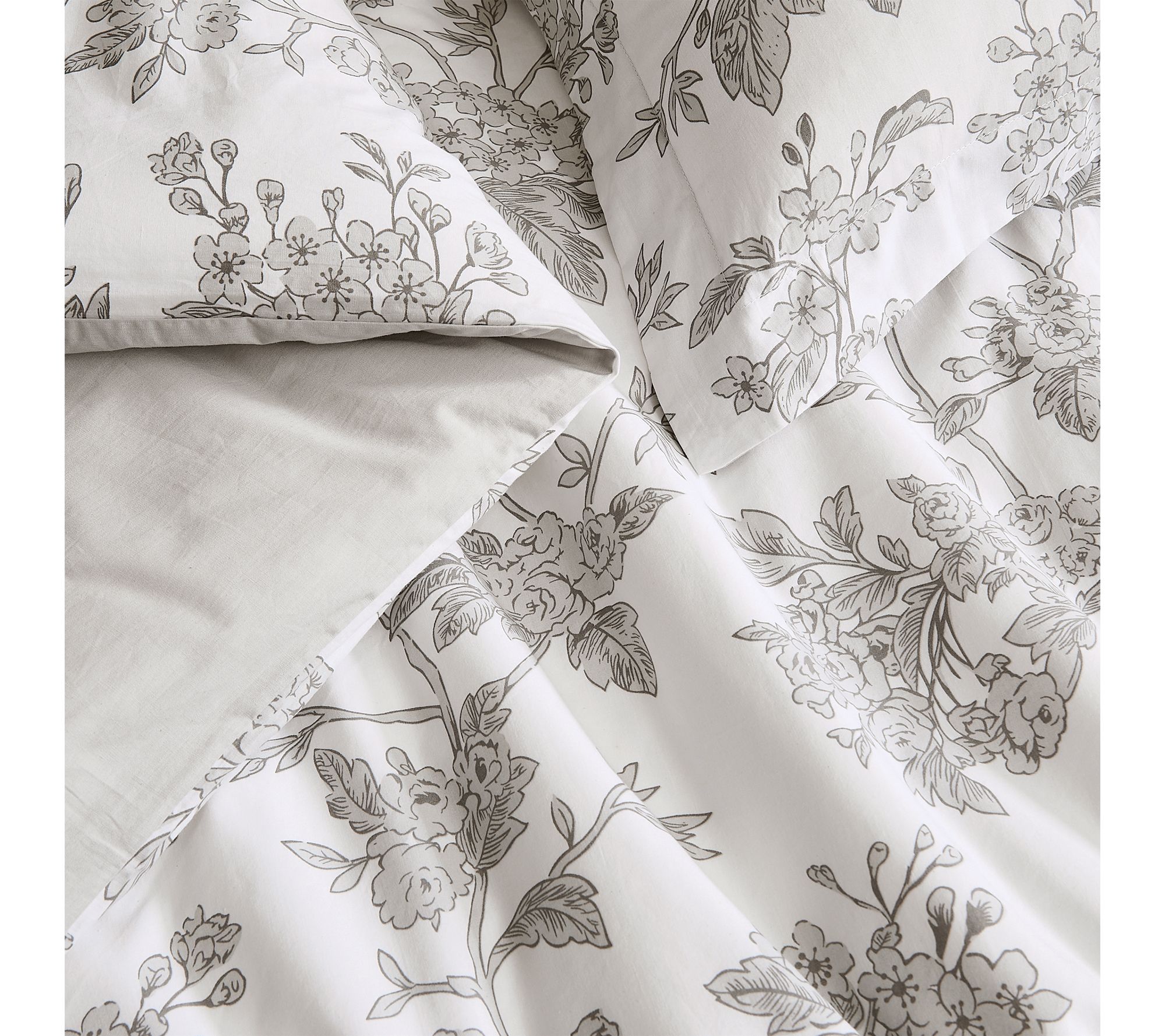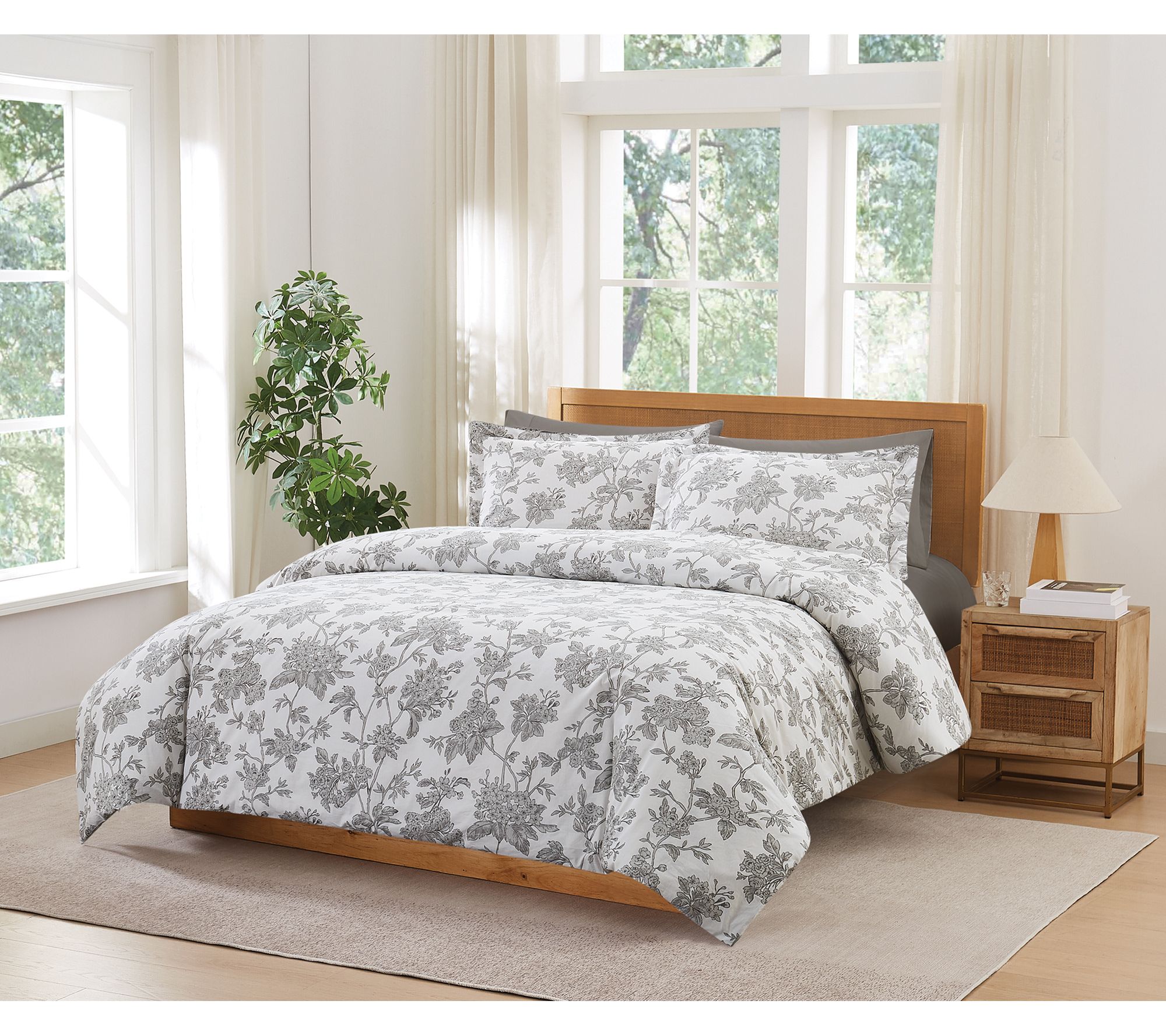 Transform your bedroom into a serene retreat with this king-size comforter set, featuring delicate florals in restful shades of white and grey. Soft cotton fabric and lightweight down-alternative fill deliver cozy comfort and inviting warmth, making it ideal for refreshing your master suite or updating your seasonal bedding. From Brooklyn Loom.