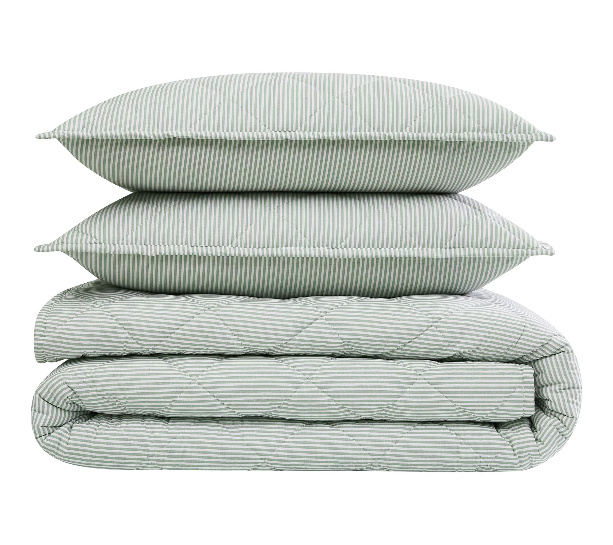 Set the stage for cozy nights with this pinstripe bedding set, designed to bring contemporary style and comfort to your bedroom. The soft, quilted texture makes every rest feel like a special retreat -- ideal for relaxing after a long day or starting your morning refreshed. From Brooklyn Loom.