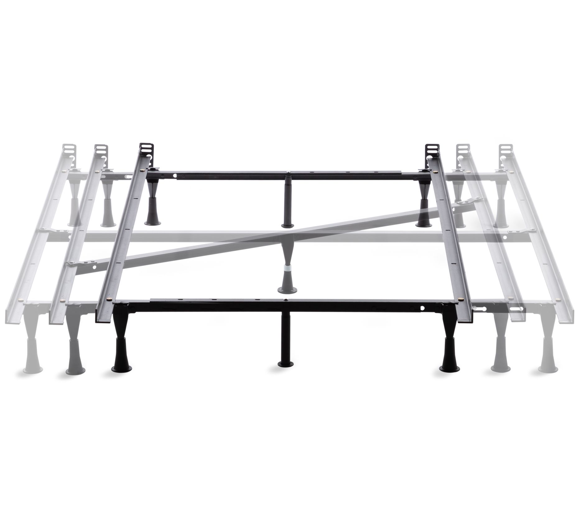 Made to change just as your bedding needs change, this heavy-duty bed frame adjusts to fit Twin through Queen-sized mattresses, and includes foot glides and a center support bar that helps give thick and heavy mattresses the support they need. From Brookside.