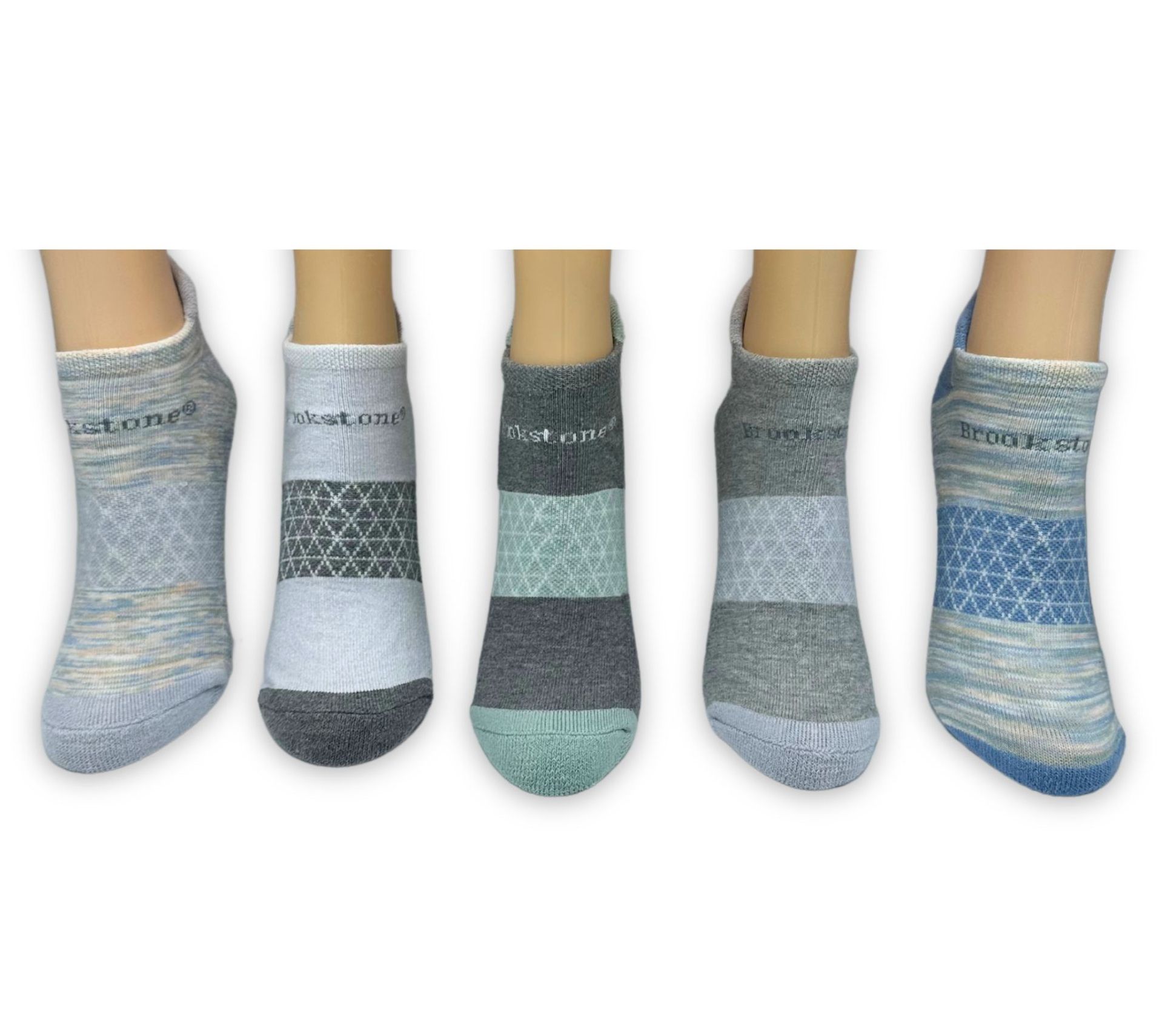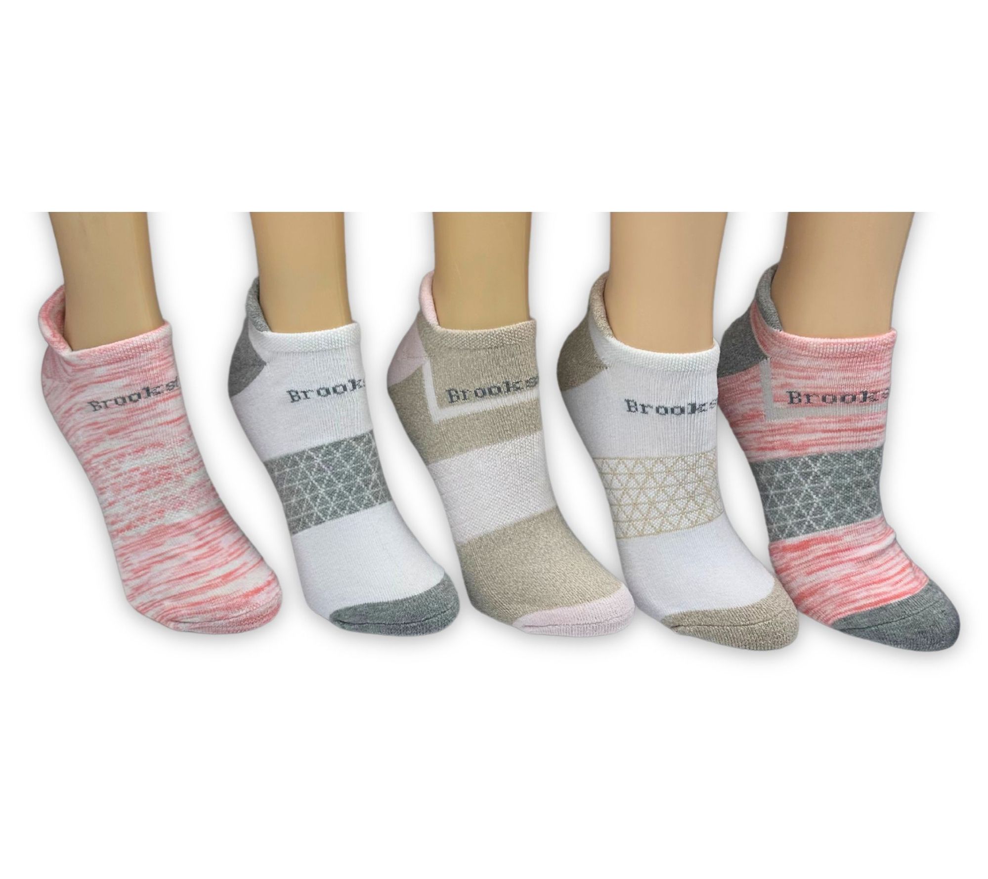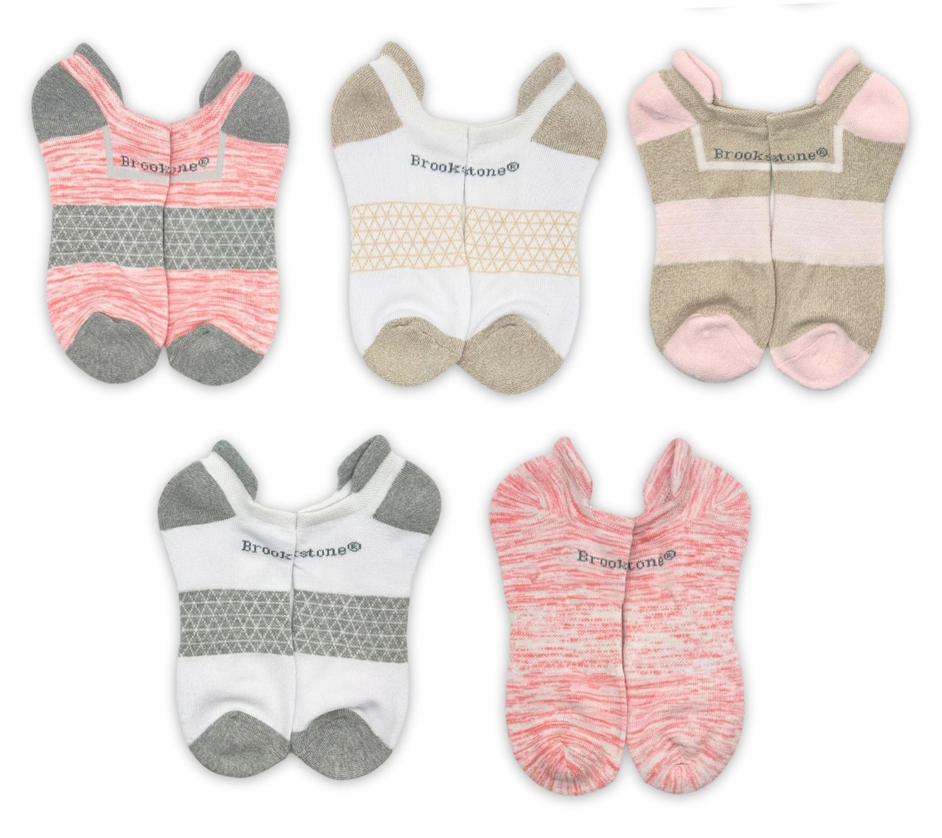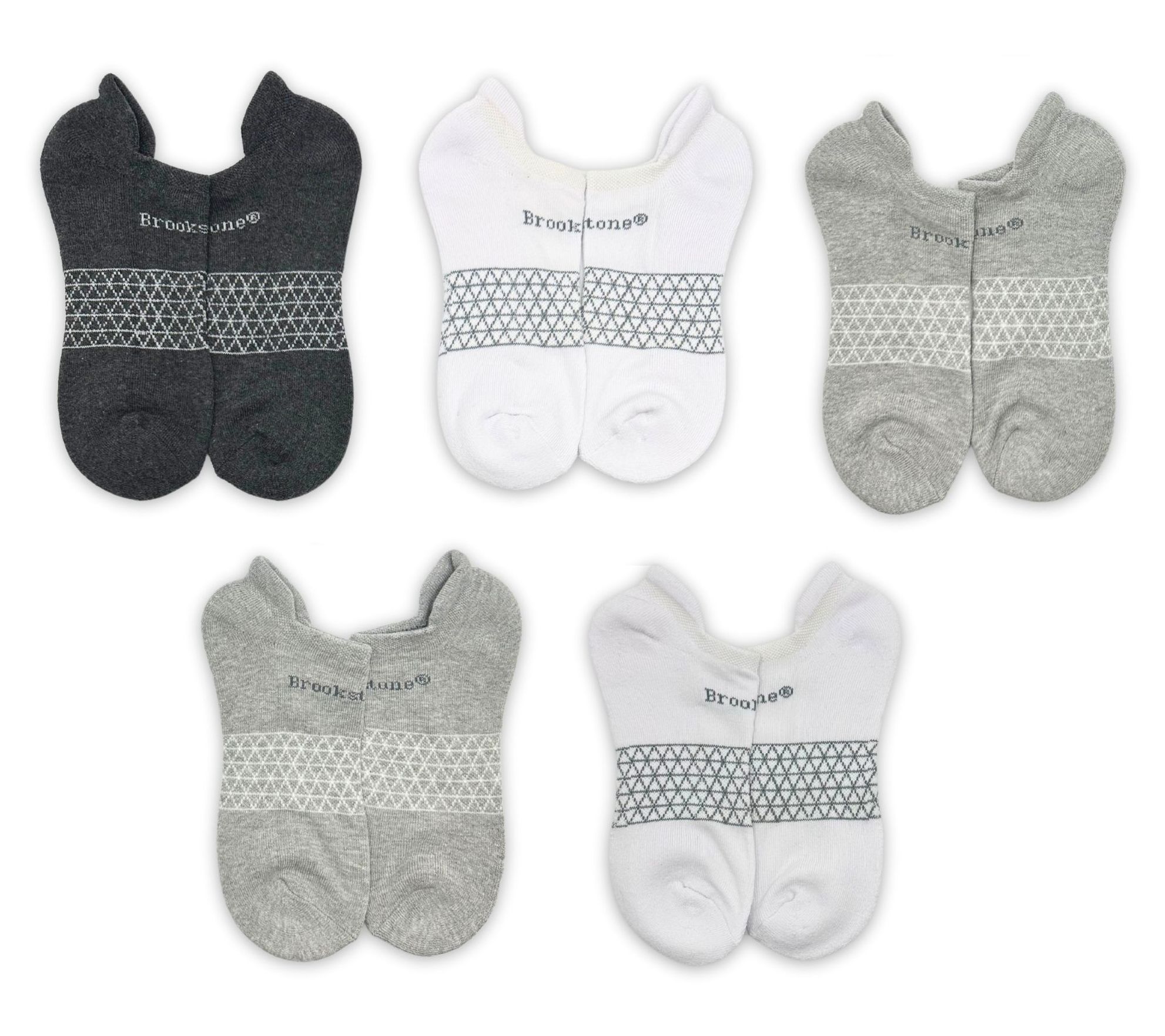 Includes five pairs of ladies no-show socks with half cushion sole and arch support
