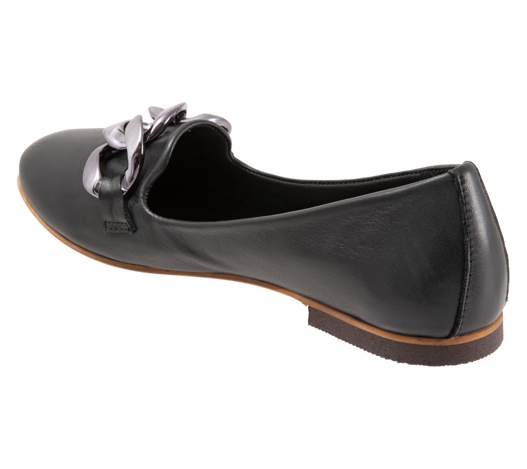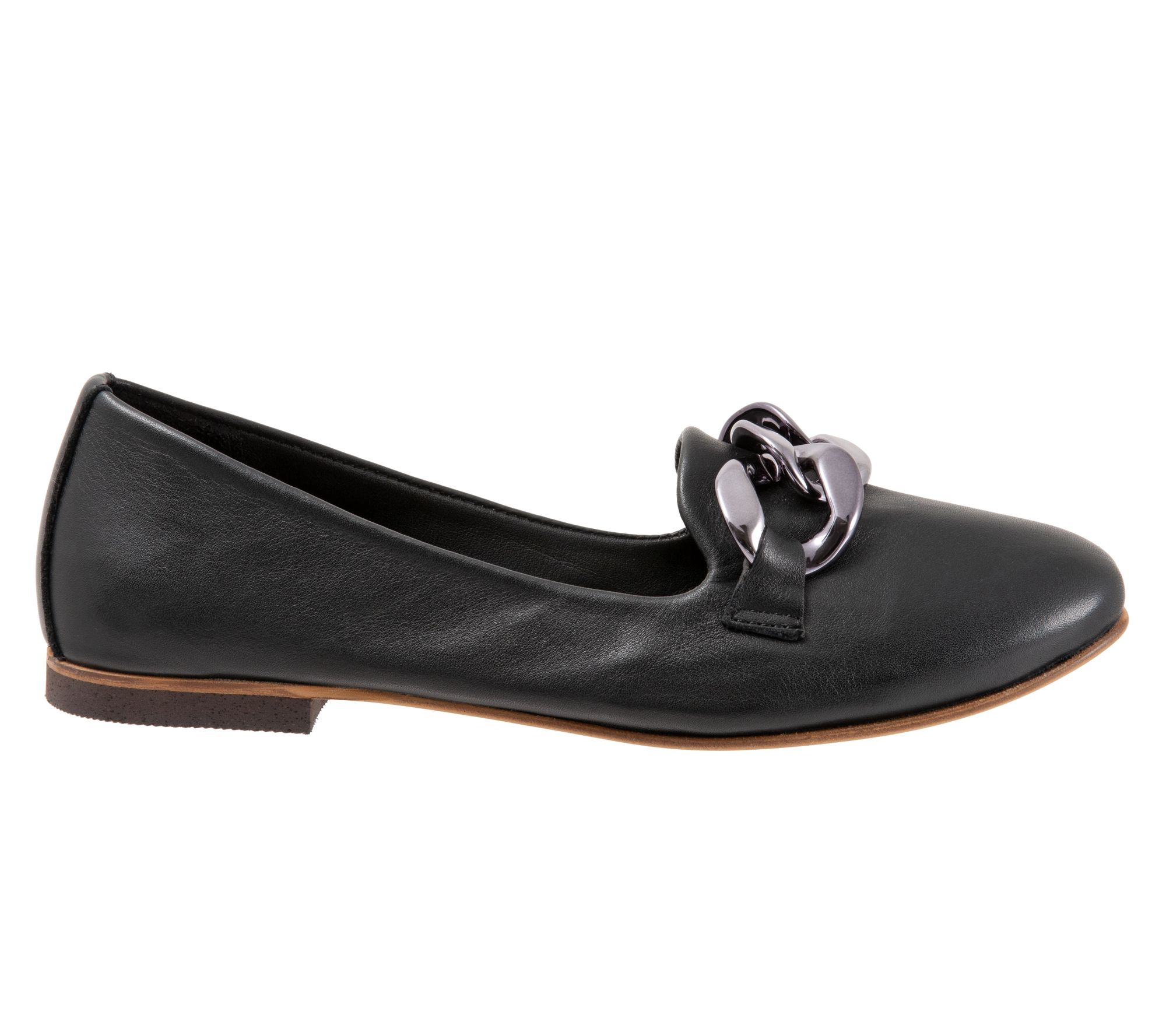 Whether you're heading to brunch or running errands, these Aston leather flats lend a chic touch with an eye-catching chain detail and easy slip-on style. Flexible soles and low scooped sides keep you comfortable, letting you move with ease all day. From Bueno.