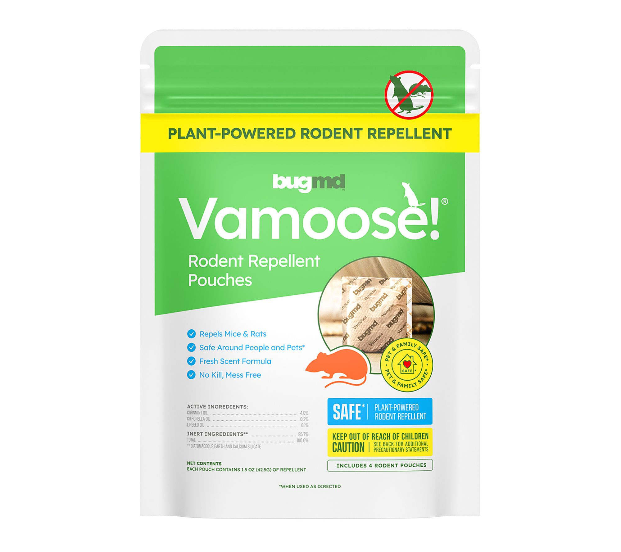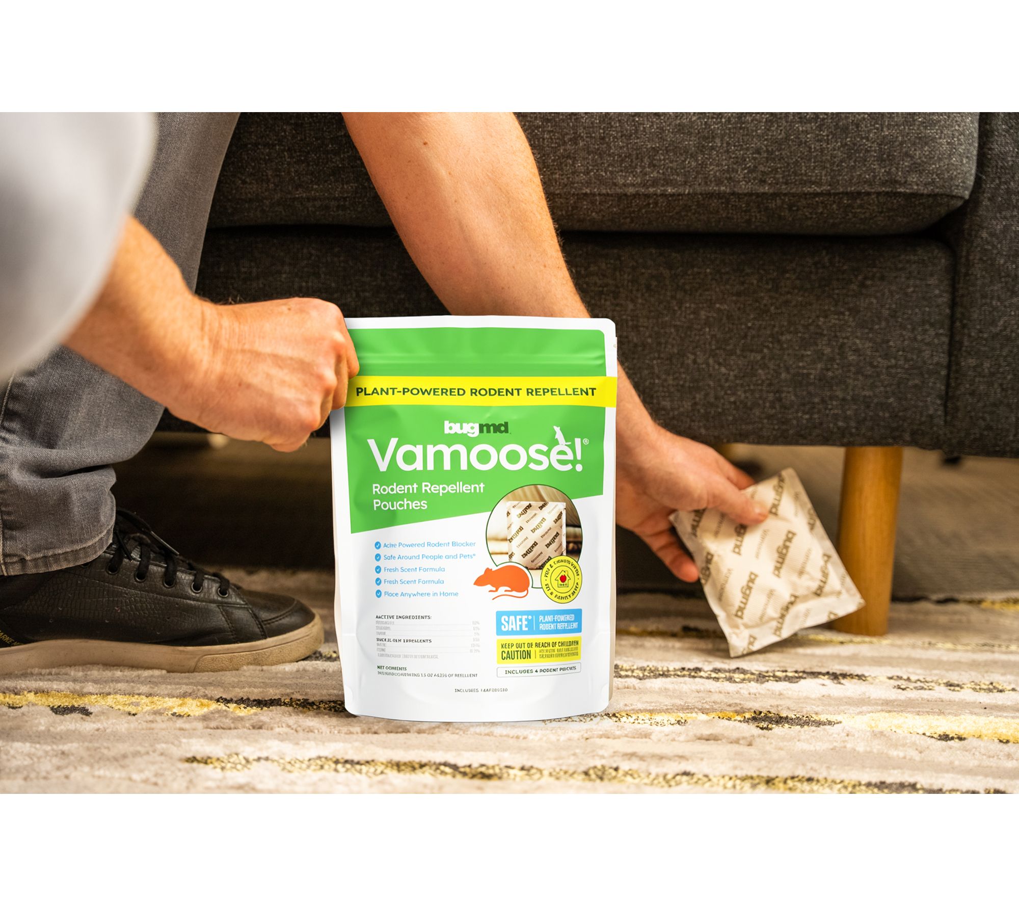 Protect your pantry, garage, or basement from pesky rodents with these Vamoose rodent repellent pouches. Simply place the pouches where you want to keep mice and rats away — no need for traps or messy cleanup, just straightforward, plant-powered defense. From BugMD.