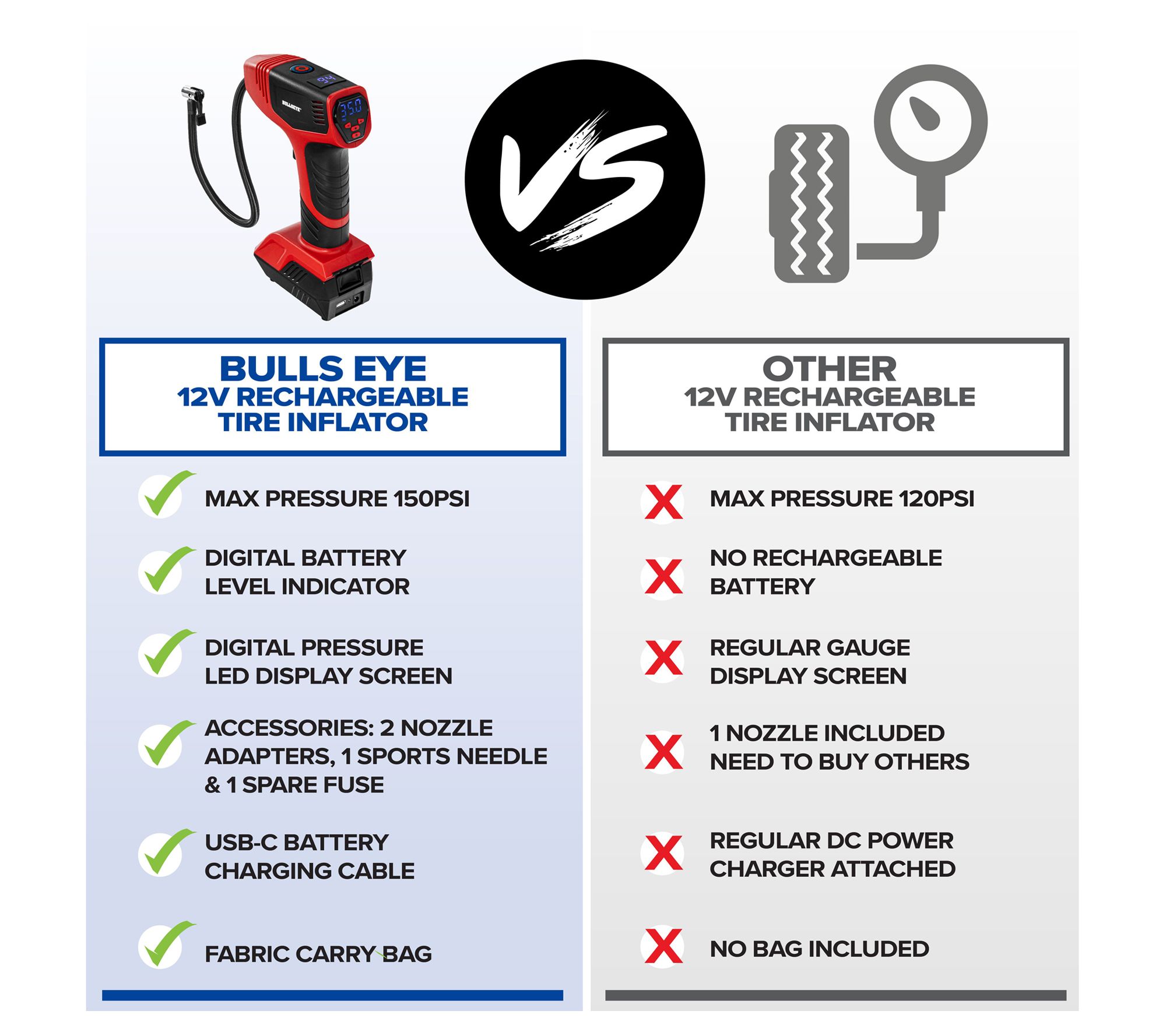 Bullseye Pro Rechargeable Car Tire Air Pump Compressor