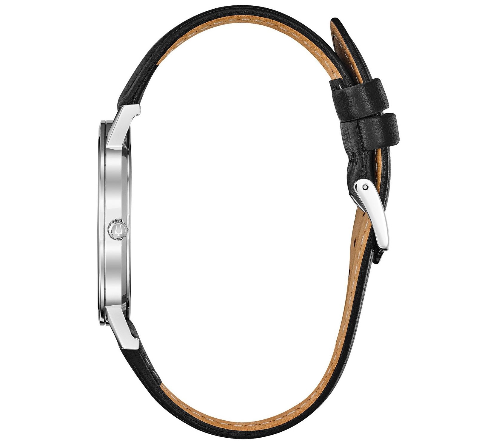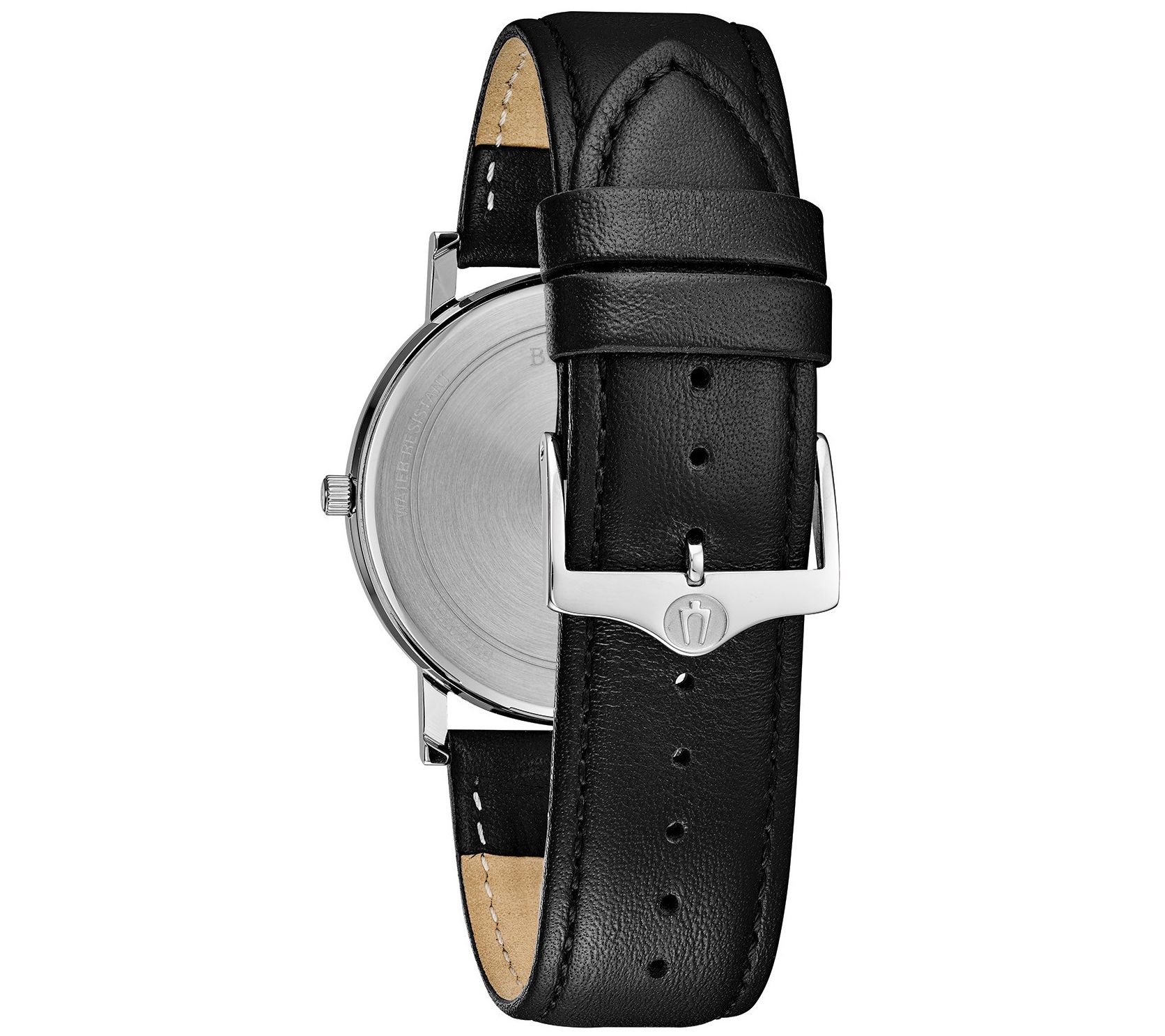When your no-nonsense man needs a tasteful timepiece, this black leather watch delivers the straightforward sophistication he's looking for. From Bulova.