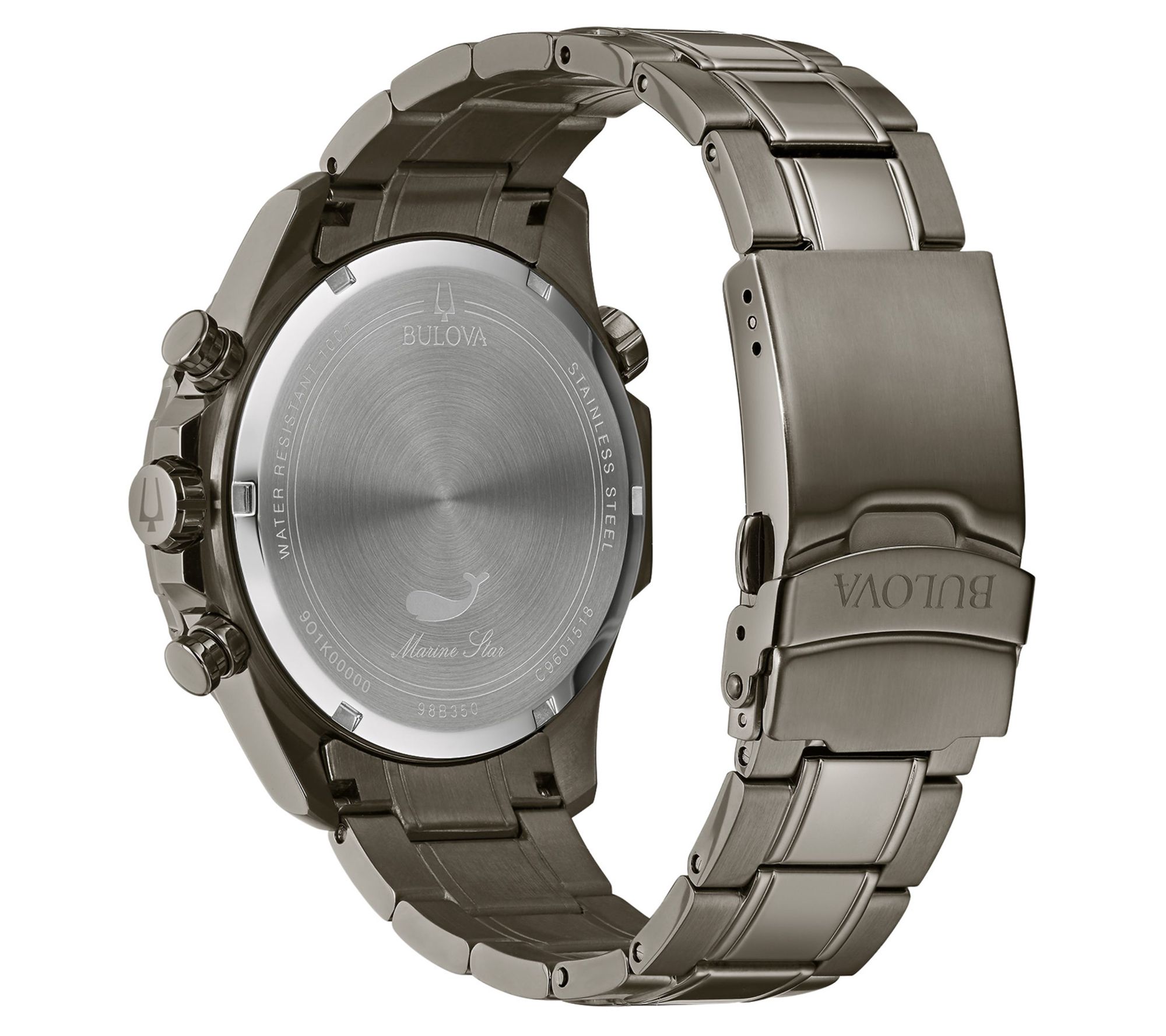 • Round, gunmetal stainless steel case; mineral crystal
