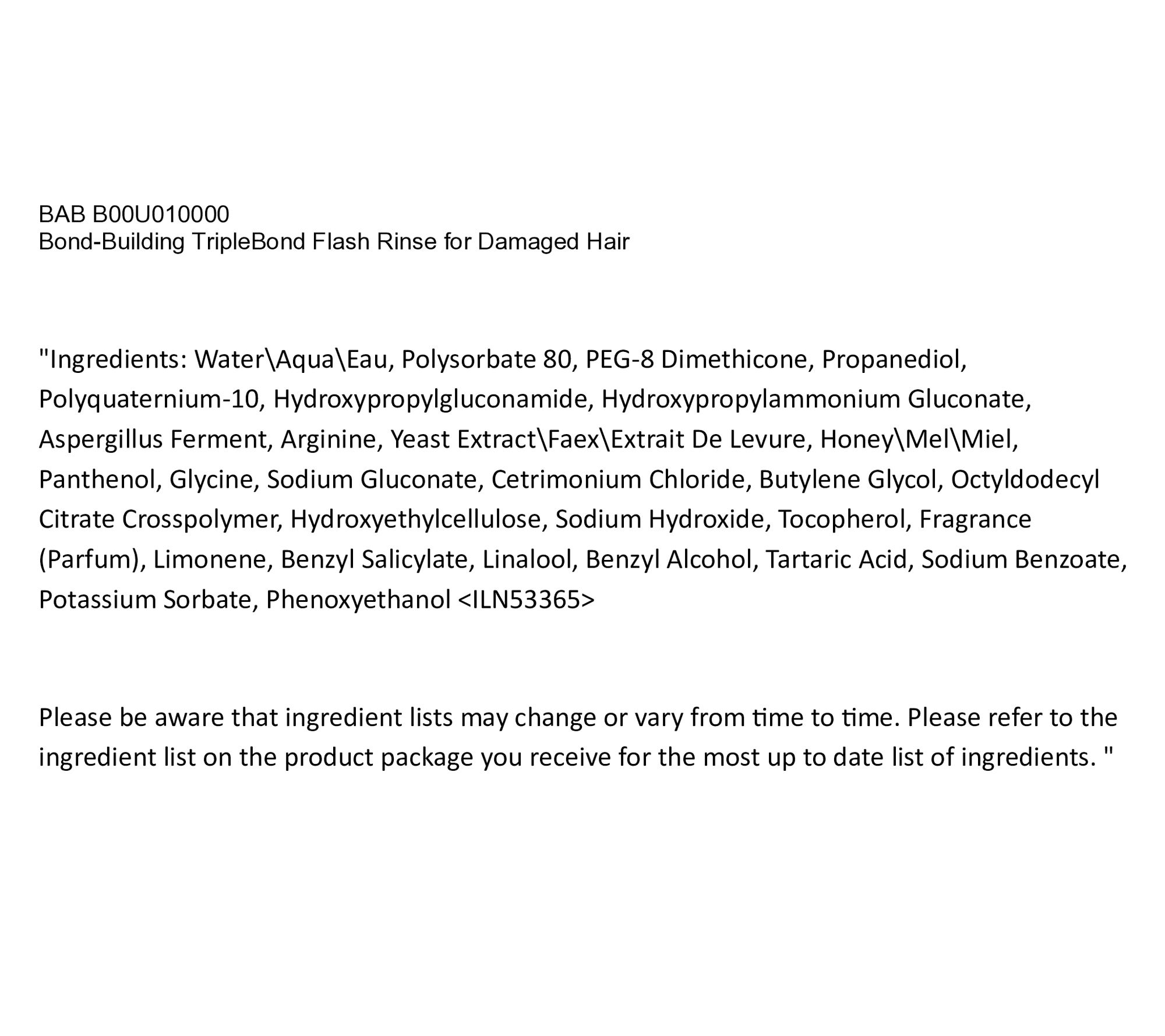Bond-Building TripleBond Flash Hair Rinse is an instant hair treatment that builds the three essential bond types to help fortify strands. It provides lightweight hydration and leaves hair shiny, detangled, and soft. It helps combat dullness and dryness (a.k.a. visible signs of damaged hair). It's powered by Honey Bond-Building TripleBond Complex, which builds three types of bonds (hydrogen, ionic, and covalent) in the cortex to help fortify hair from the inside out. Micellar Conditioning Technology attracts and lifts away impurities while conditioning and adding shine.