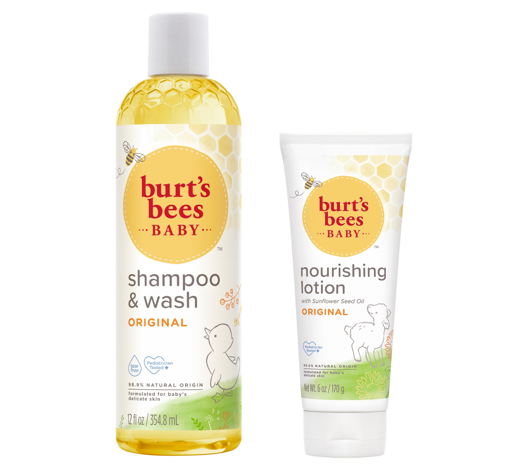 Make bath time a breeze with Burt's Bees Baby Shampoo and Wash and Nourishing Lotion. The Shampoo and Wash will cleanse your baby's soft skin from head to tiny toe, so there's no fussing -- just fun.