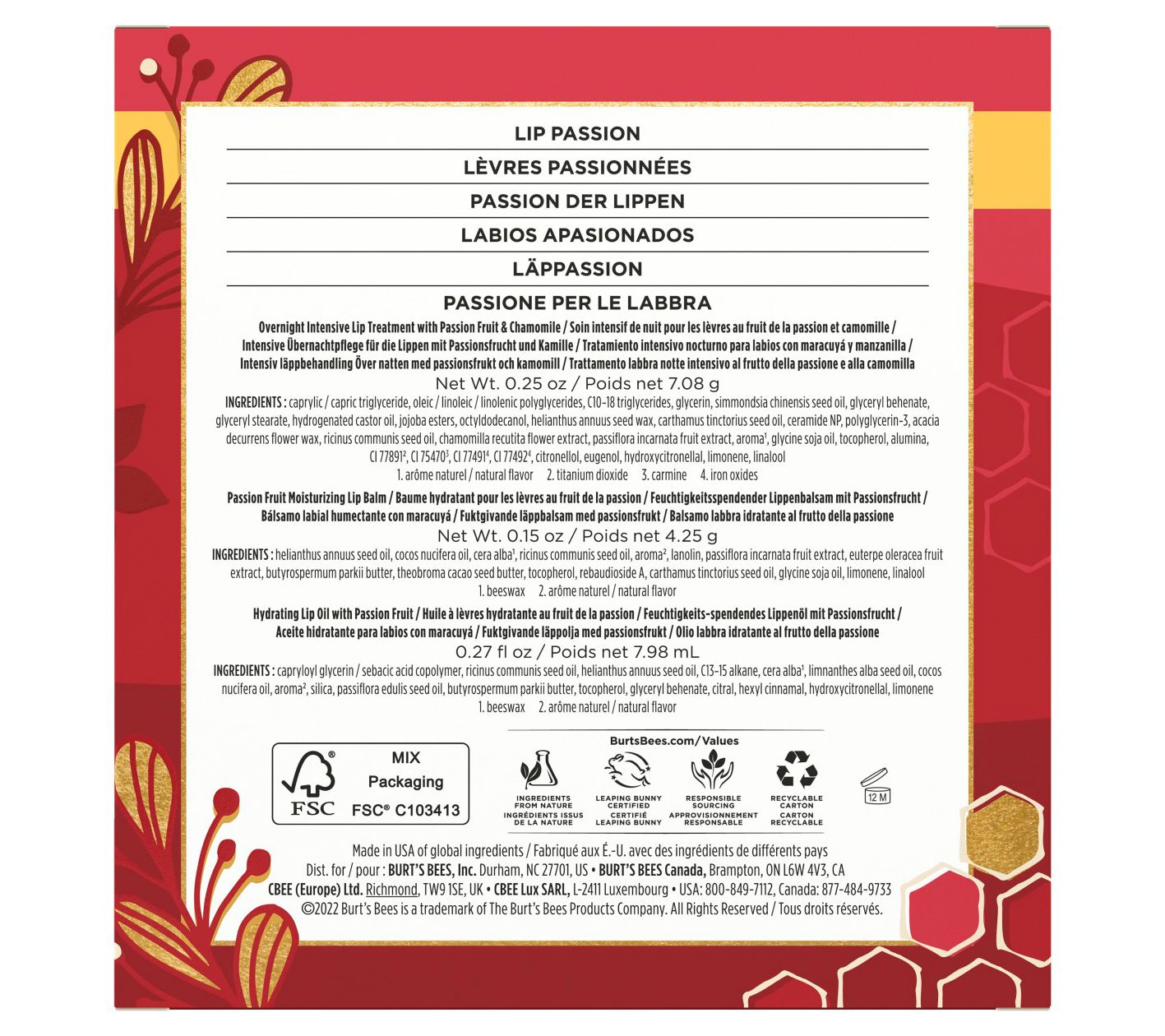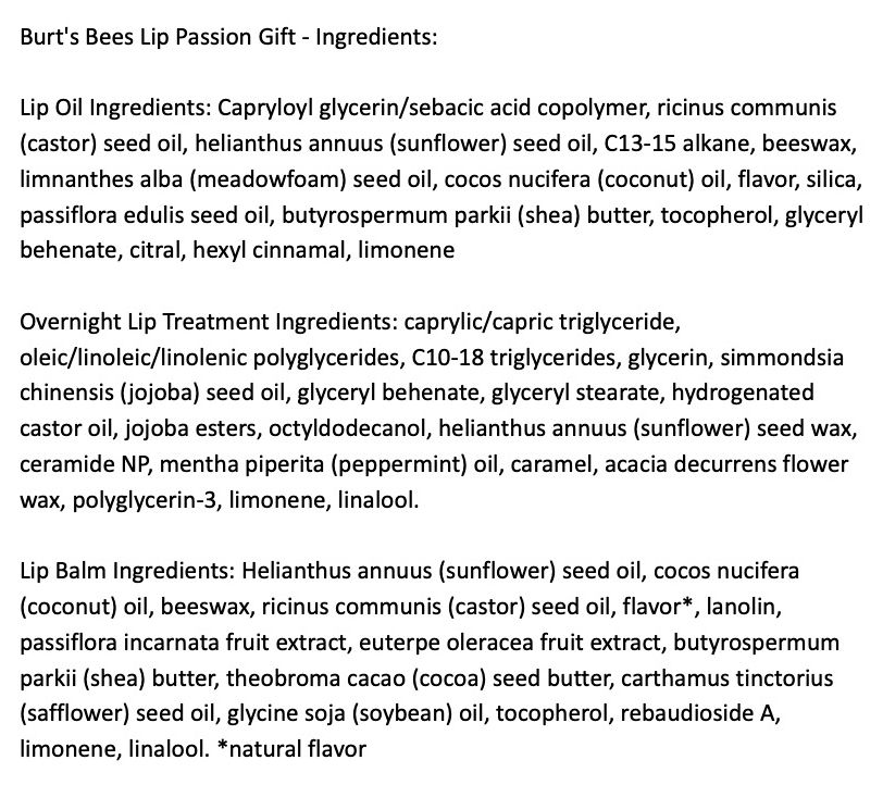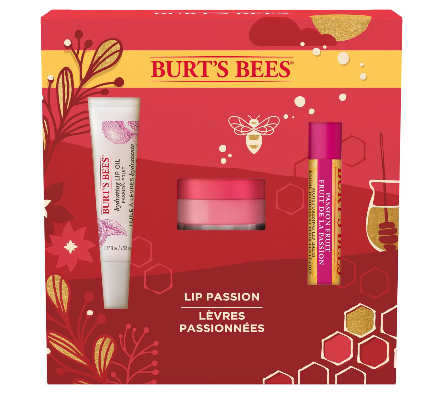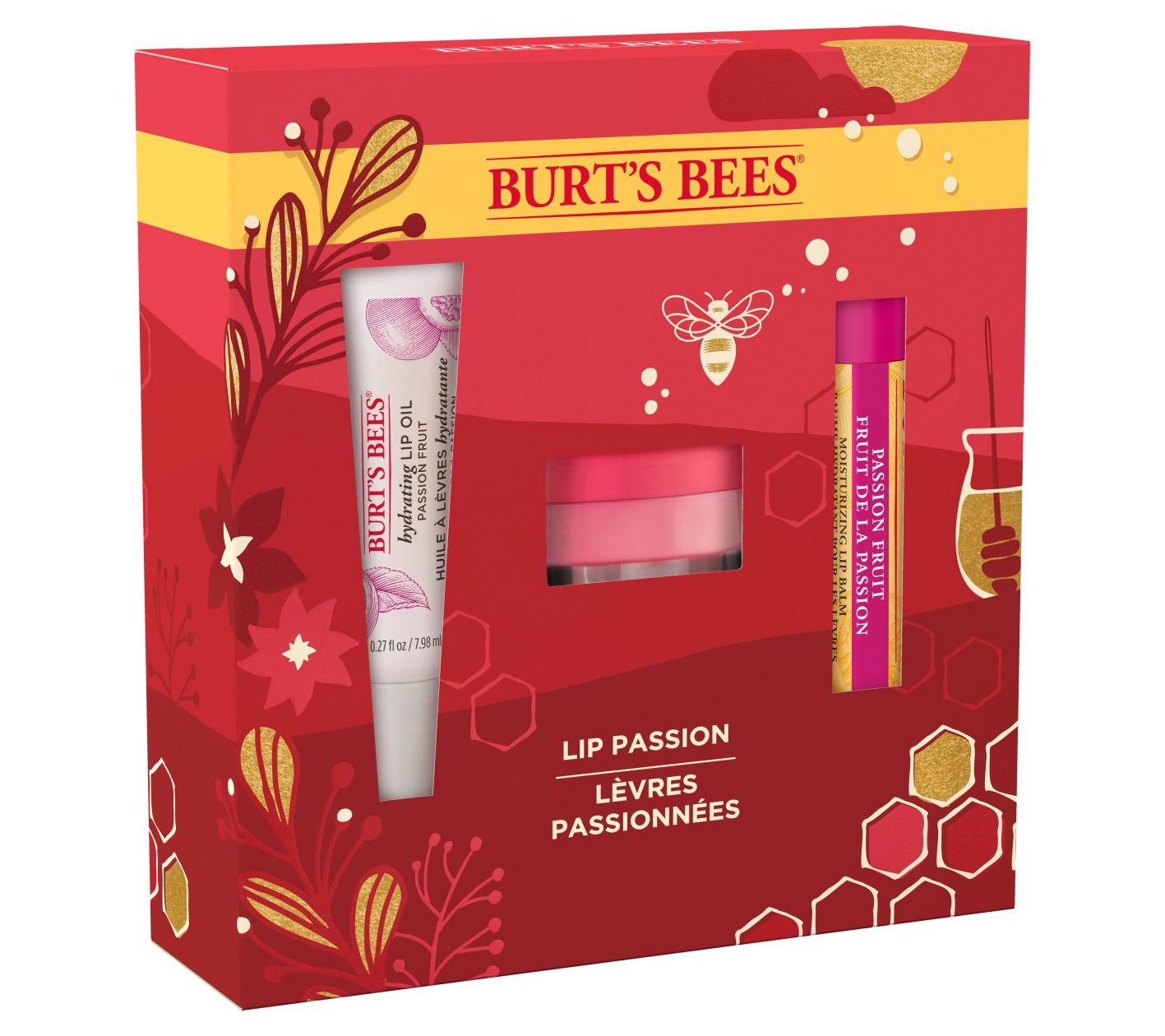 Burt's Bees Lip Passion Gift Set features three lip care products: Hydrating Lip Oil, Overnight Intensive Lip Treatment, and Lip Balm. This three-piece gift set is wrapped in a Burt's Bees signature holiday gift box ready to be gifted to that special someone (or to pamper yourself). Lips deserve self-care too, and this Lip Passion Holiday Gift Set makes a thoughtful gift for anyone on your list.