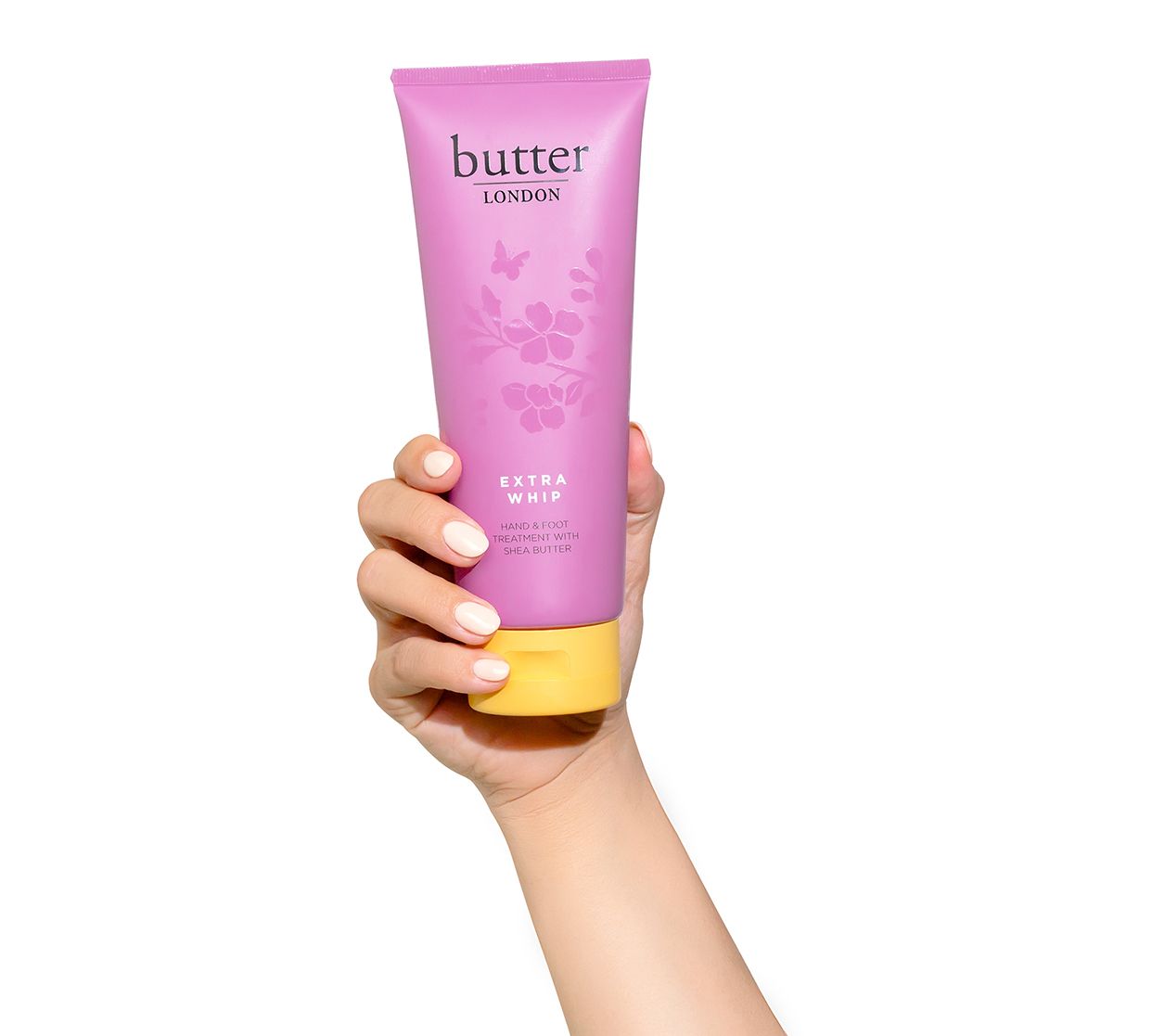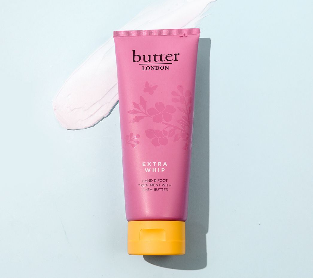 Indulge in self-care, anywhere with the rich hydration of butter LONDON Extra Whip. Formulated with ingredients like shea butter, cocoa seed butter, niacinamide, and caffeine, the soft pink hue and luxe, spa-like champagne scent of this hand and foot cream helps create a sense of a perfect me-time experience.