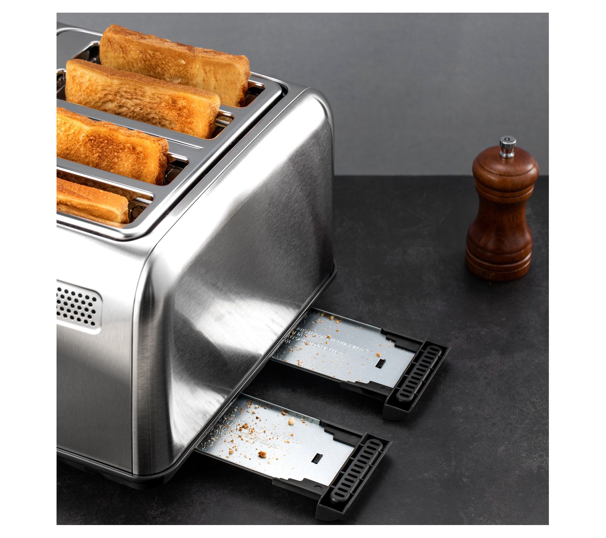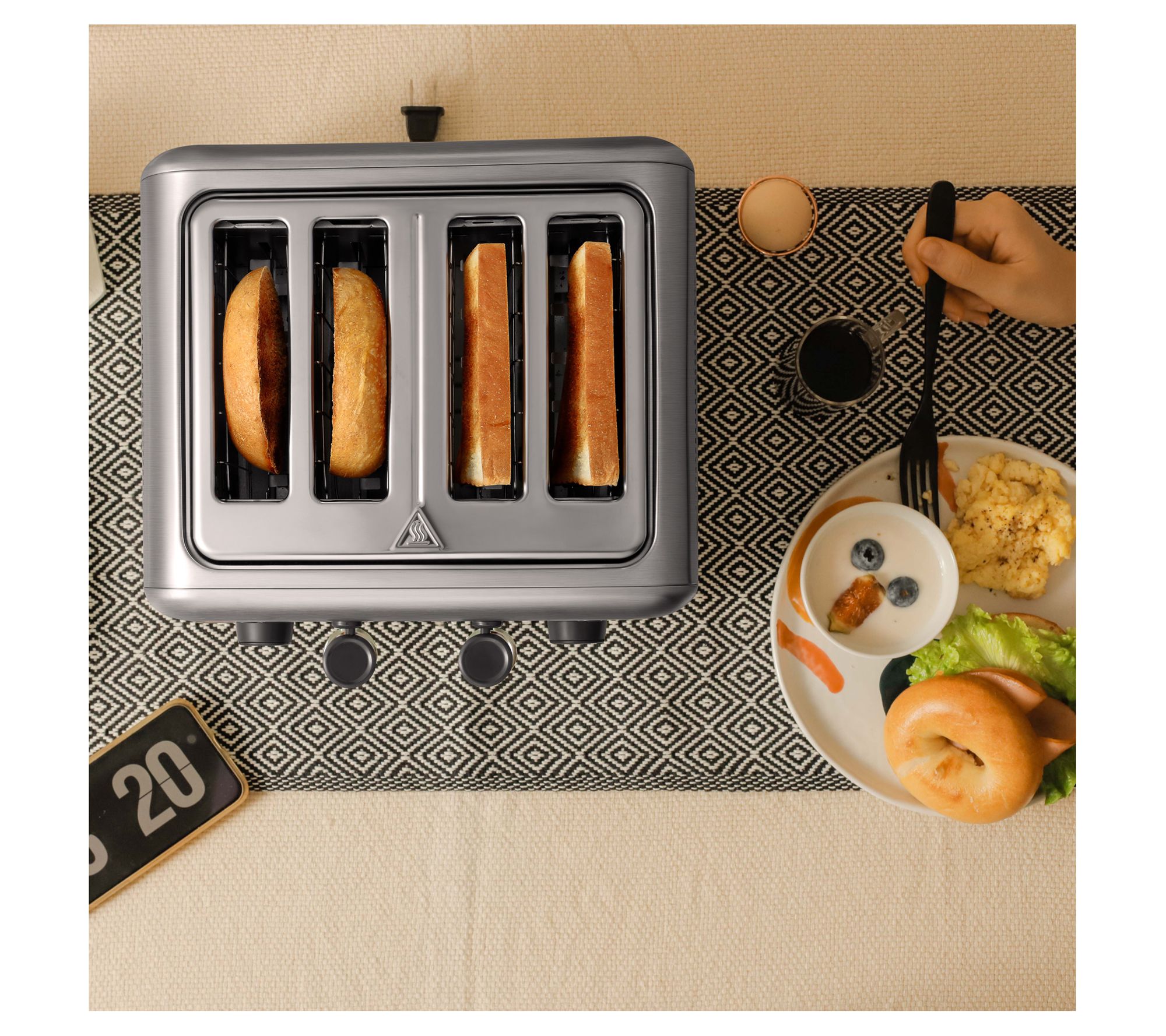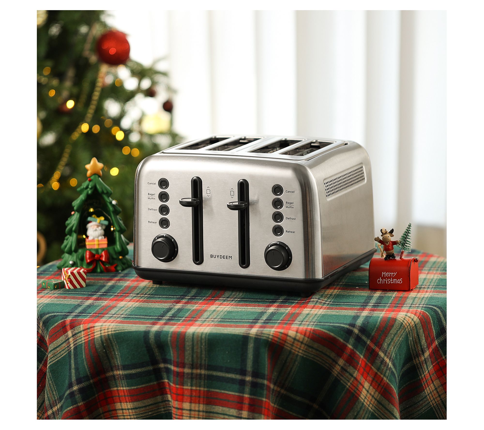 Start your day off right with this four-slice toaster, featuring a True Bagel toasting function that crisps the cut side while warming the other, ensuring a perfect bagel every time. Its extra-wide slots accommodate various bread types, while the dual independent control panels offer a customized toasting experience with seven shade settings. From BUYDEEM.