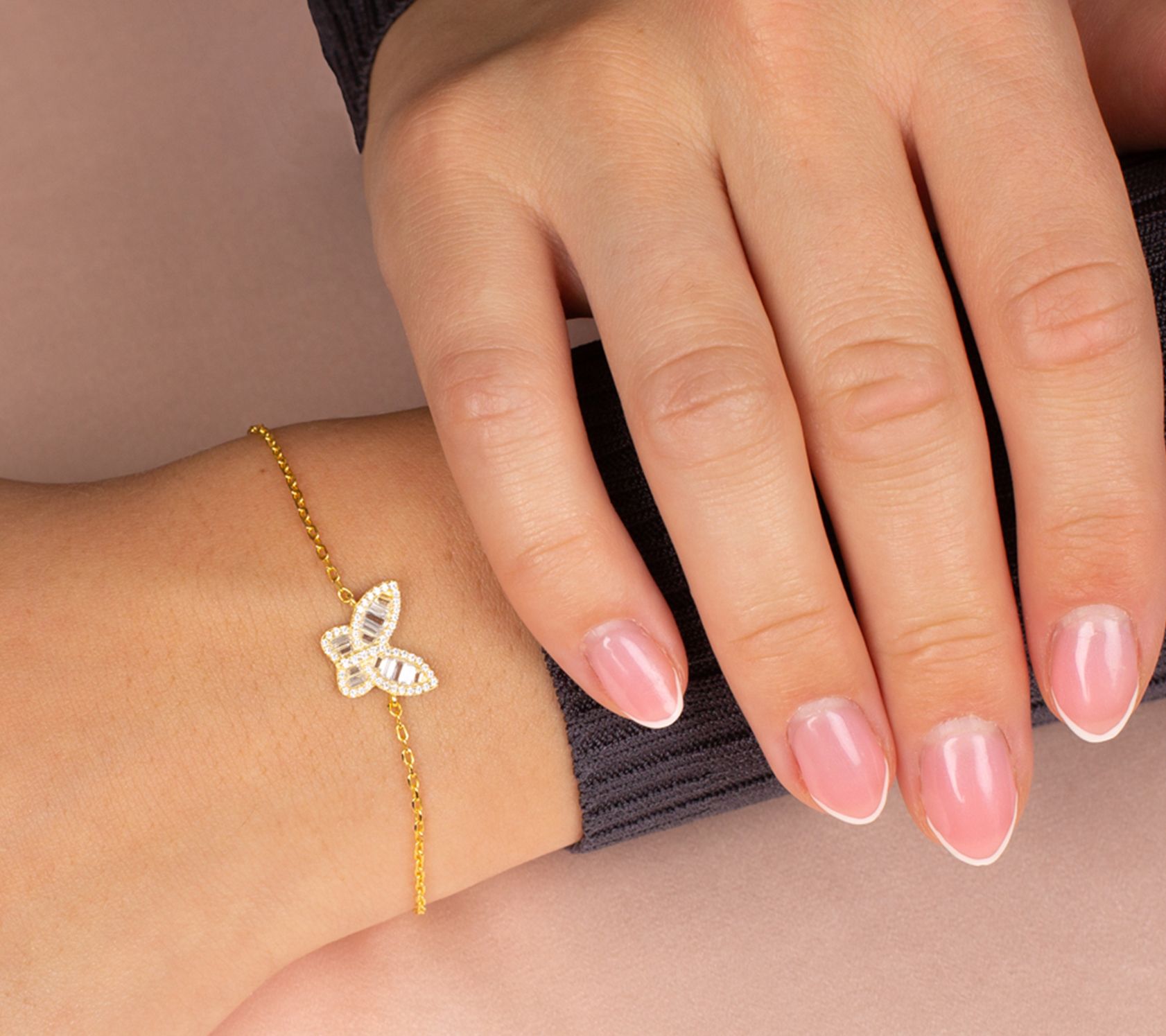 • Cable chain bracelet with a round- and baguette-cut cubic zirconia butterfly