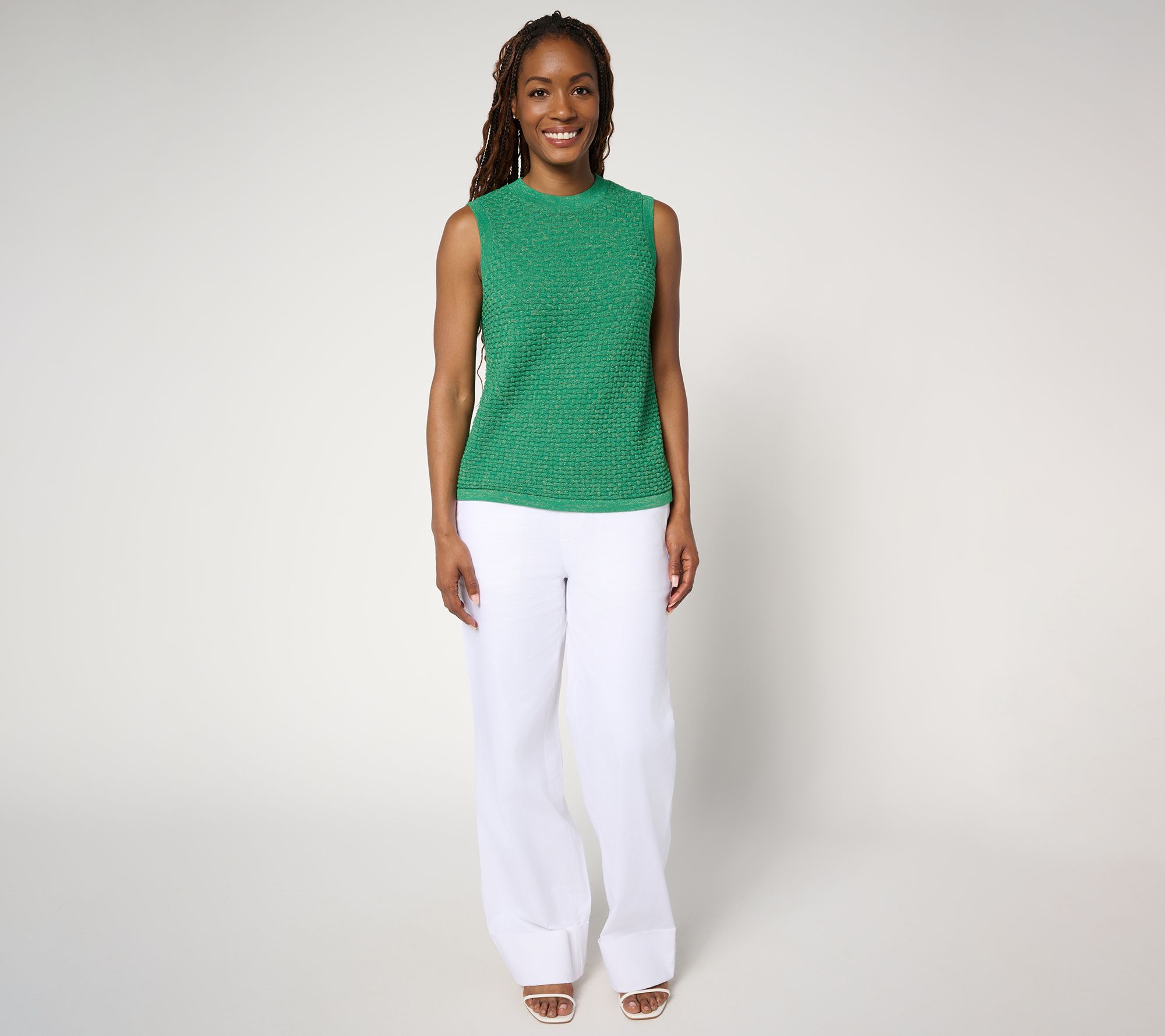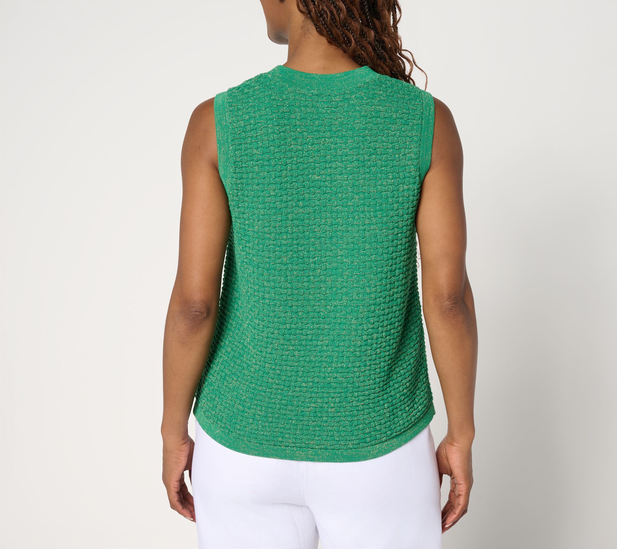 Sparkle in any season with the delicate metallic sheen of this basketweave tank top, a fresh interpretation of a classic. The softly structured style layers under a cardi or jacket for a party, a night at the theater, or the office like a dream. From by Stacy London.