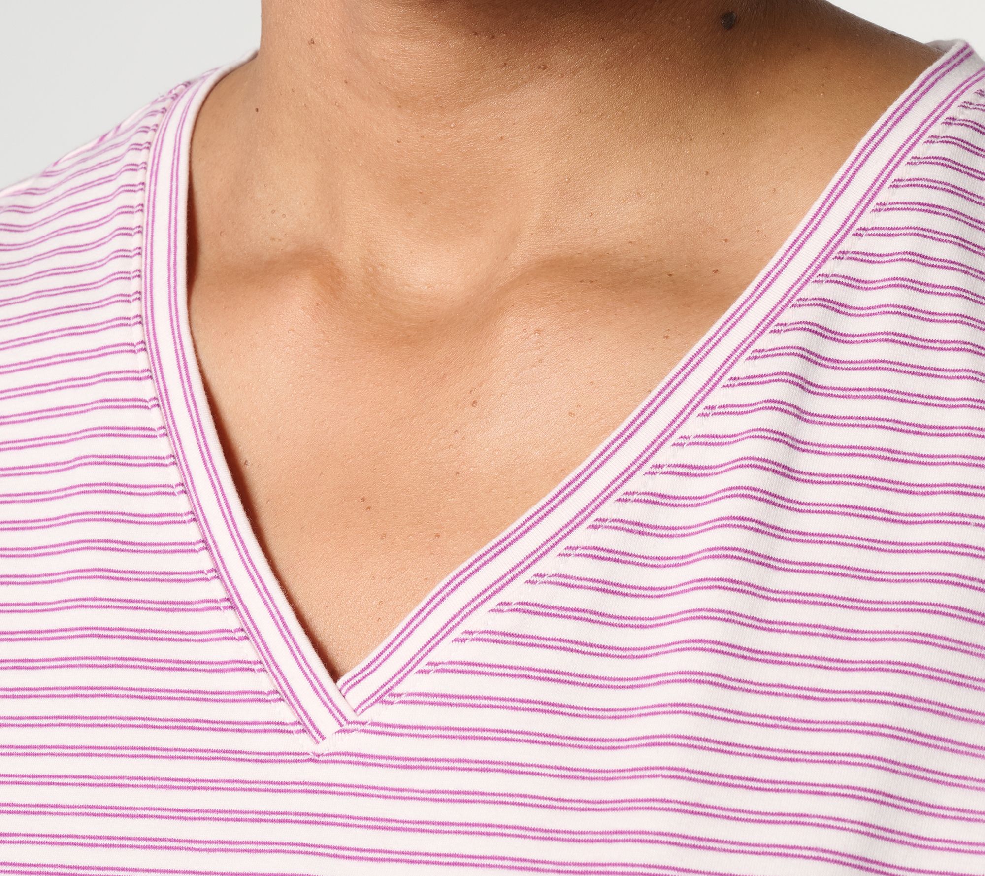 Features: clean-finished V-neckline, curved hem