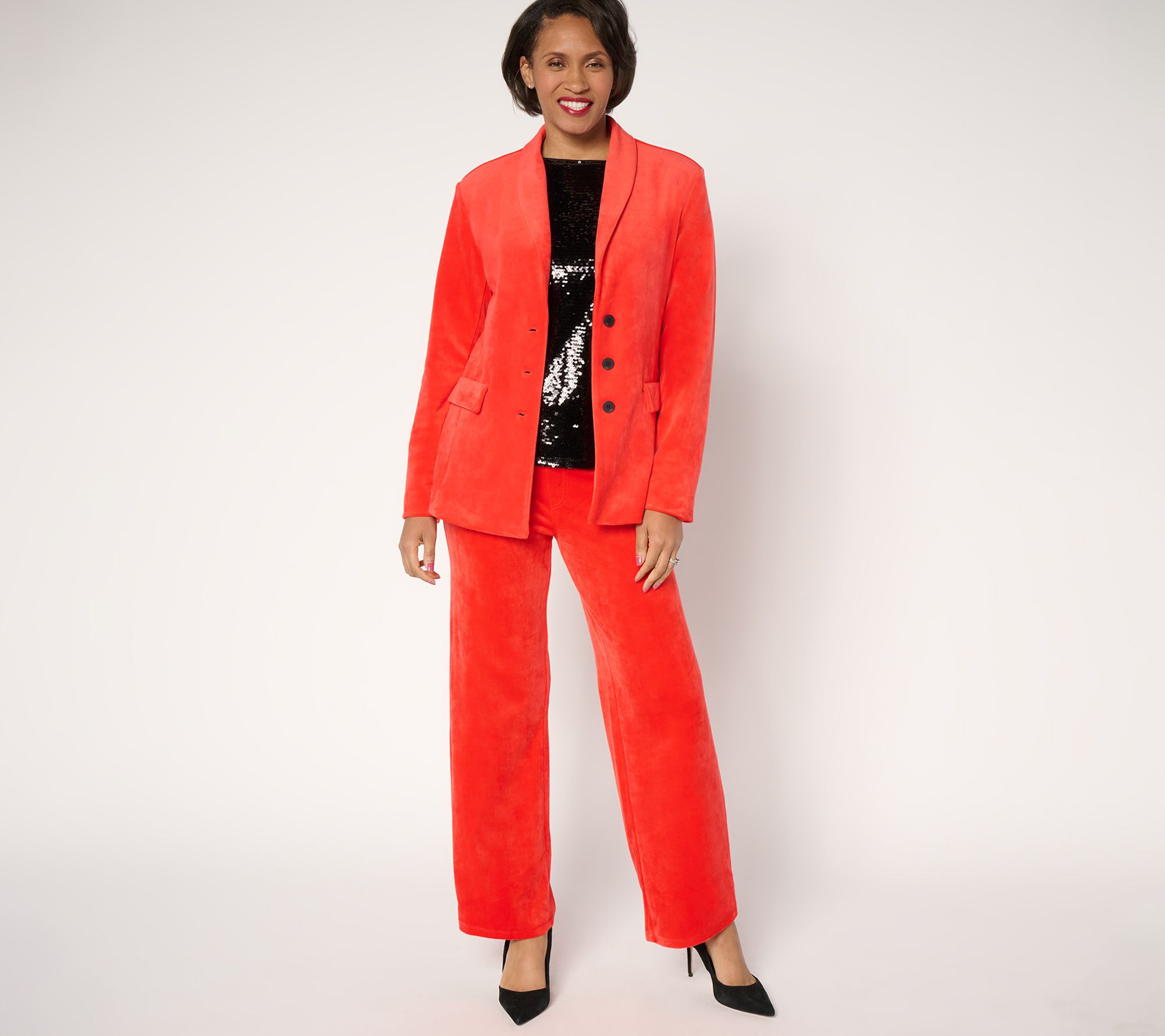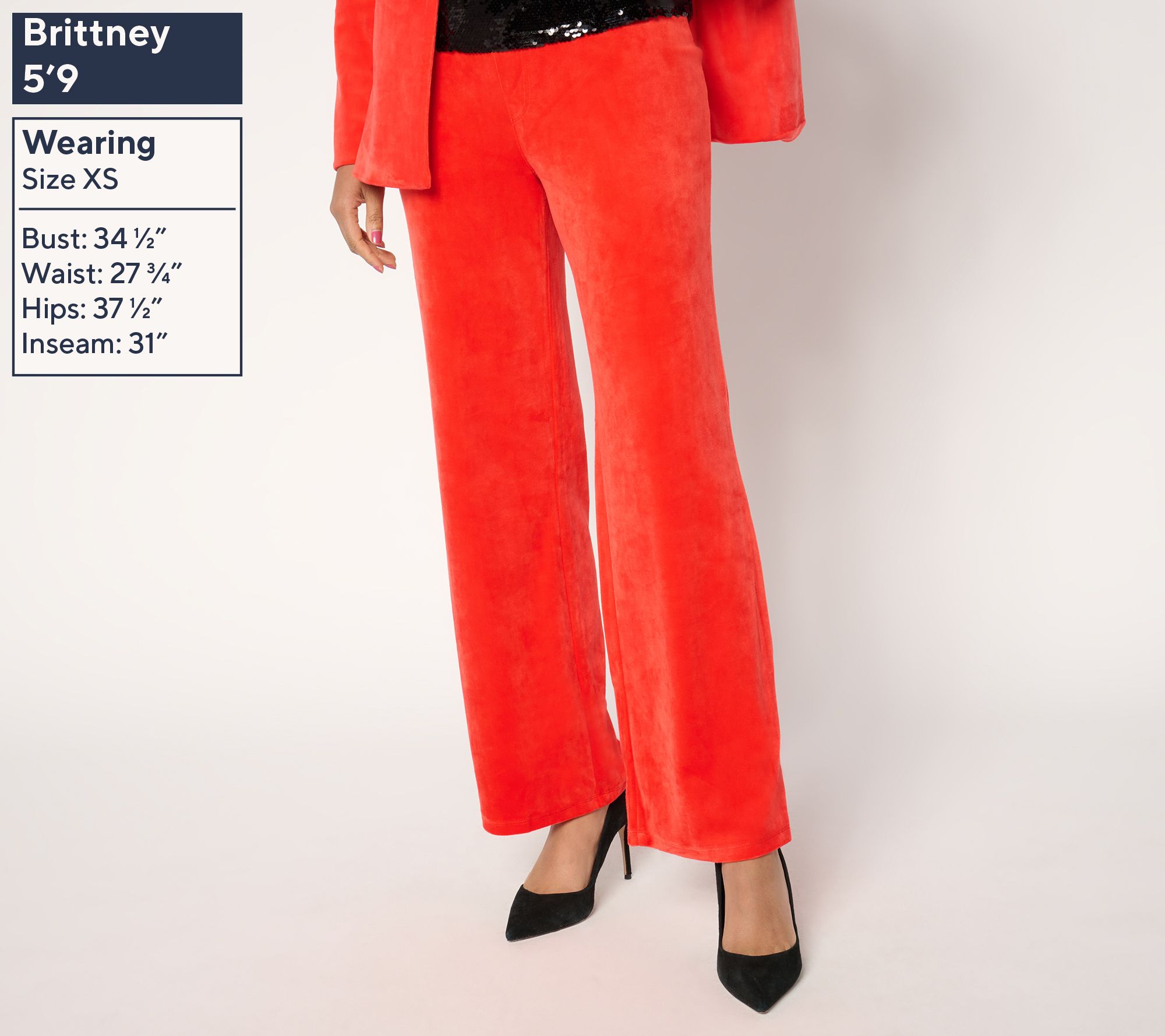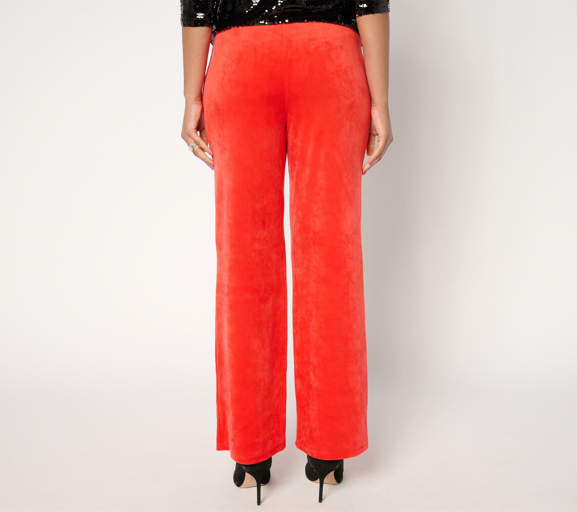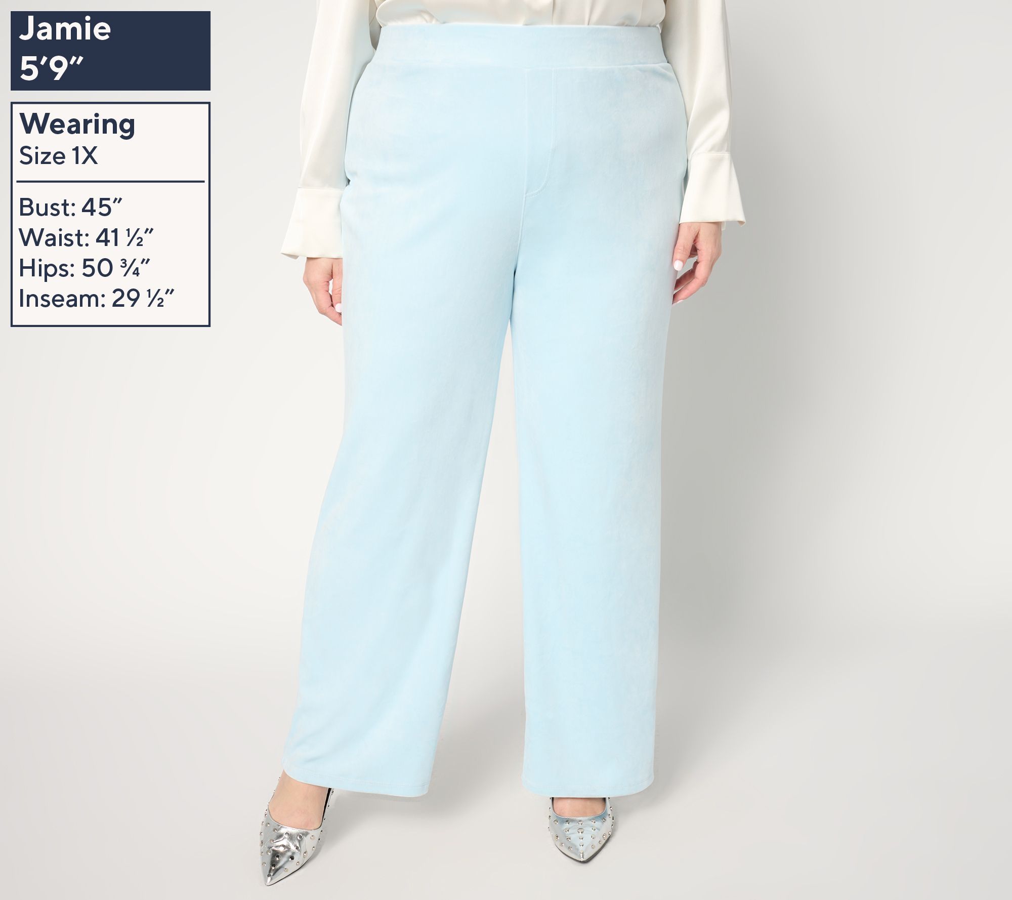 Comfortable and oh-so stylish, these plush velour pants are fashioned with a flat elastic waistband and a straight leg. Dress them up or down depending on what's on your calendar. From by Stacy London.