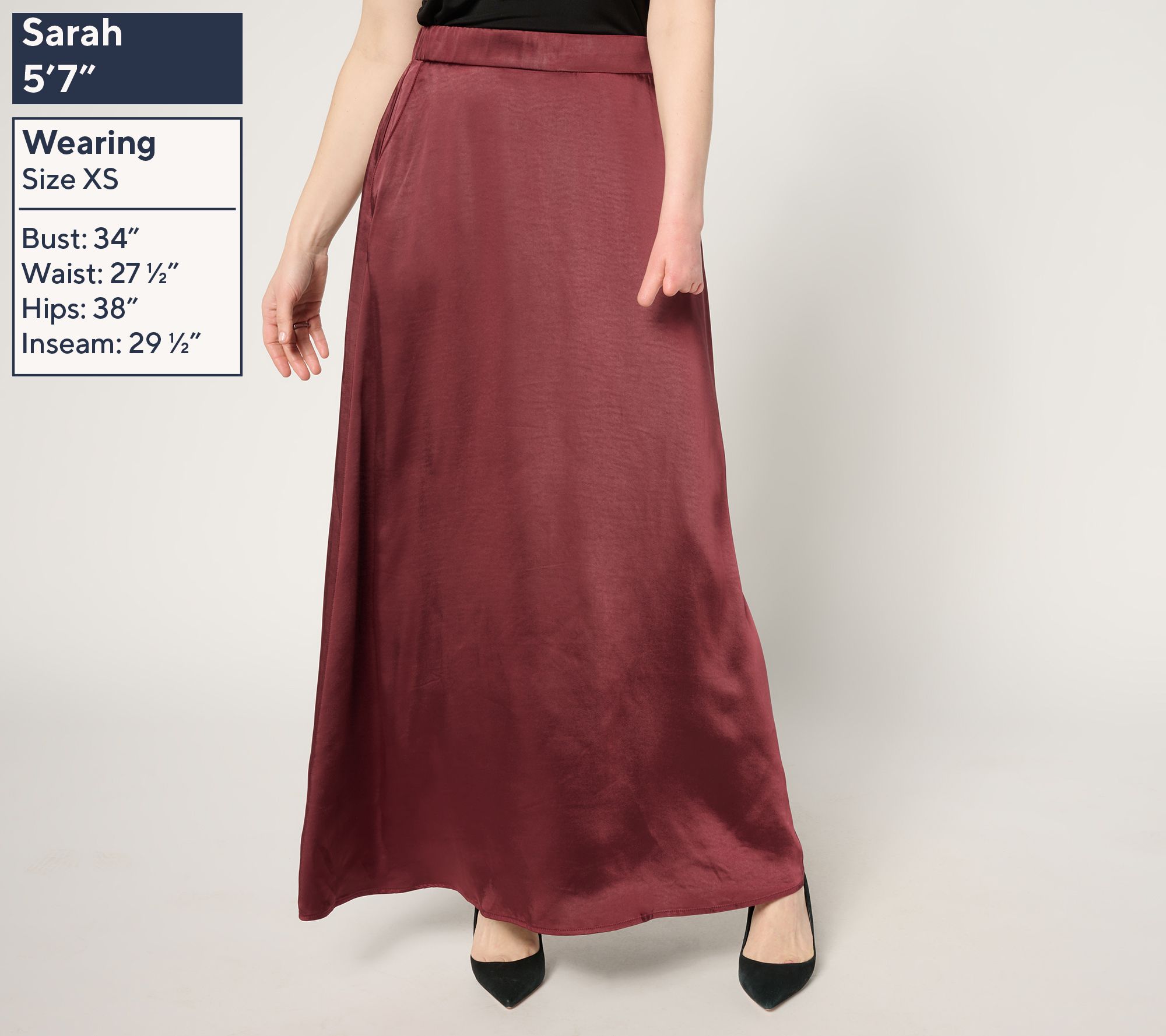 Twirling in this satin maxi skirt is pure joy, whether you're out for brunch or attending an evening event. With its elegant drape, this skirt moves beautifully with every step. From by Stacy London.