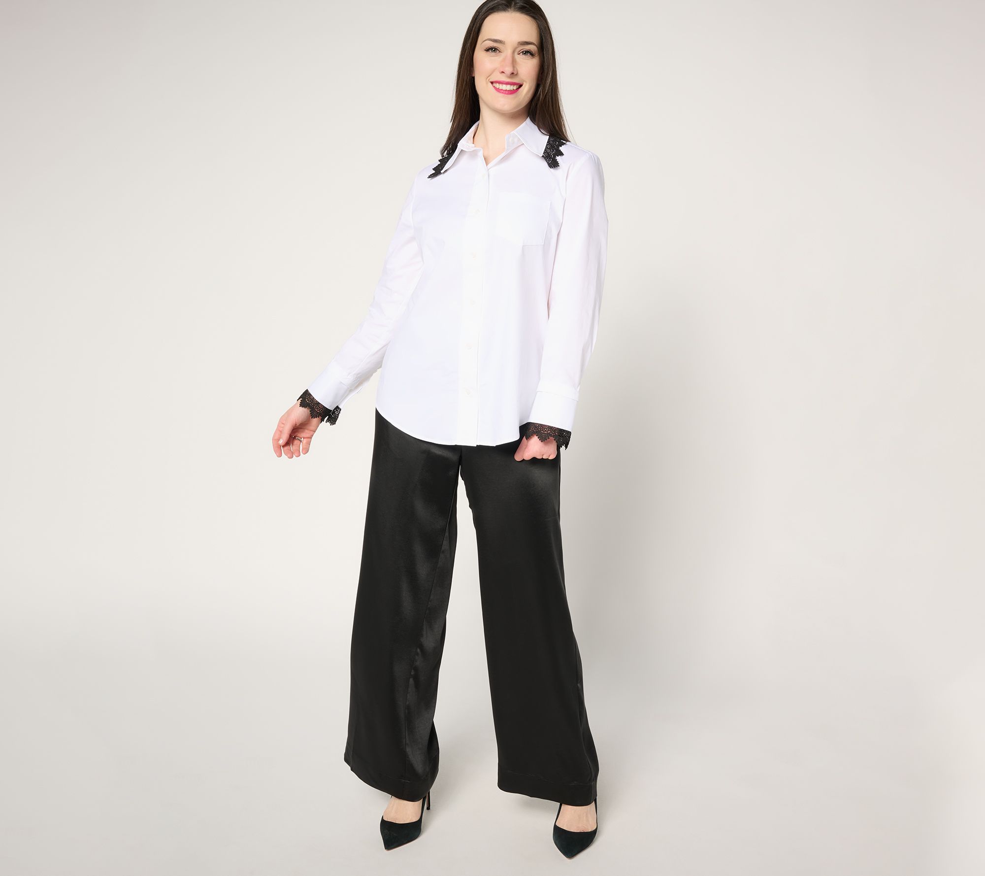 If you love a timeless, put-together style, this poplin foundation shirt deserves a spot in your wardrobe. Its classic style and easy fit make it versatile enough for both office hours and weekend outings. And if you love to personalize your 'fits, simply add a Stacy London addable (not included) to the collar; it's built for it! So effortlessly chic. From by Stacy London.